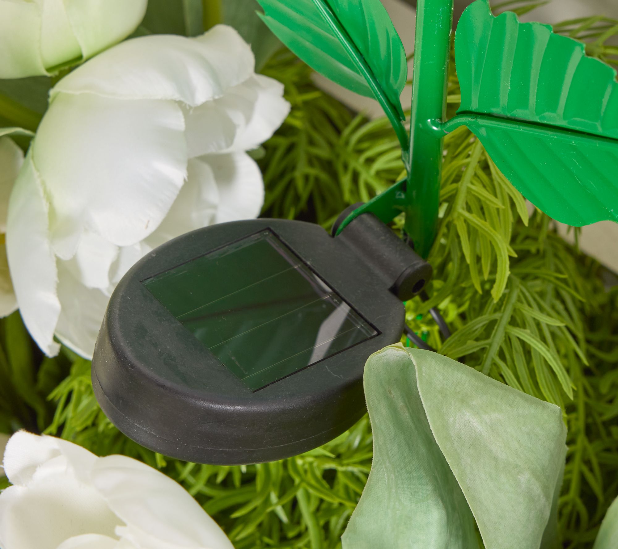 A solar flower stake adds a welcoming glow to your garden or patio, bringing a touch of light among your outdoor blooms as dusk settles in. With a sturdy metal design, it stands tall wherever you place it, ready to add illumination to pathways or garden beds. Solar-powered and easy to stake in, this decorative accent makes evenings outside more inviting. From Jennings.