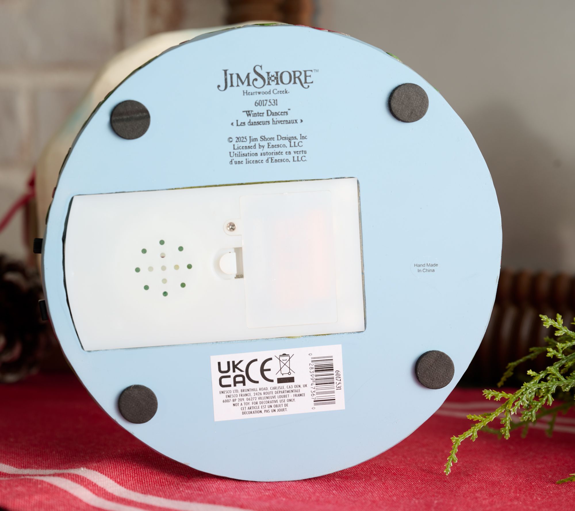 • Features snow friends at play with moving carousel design