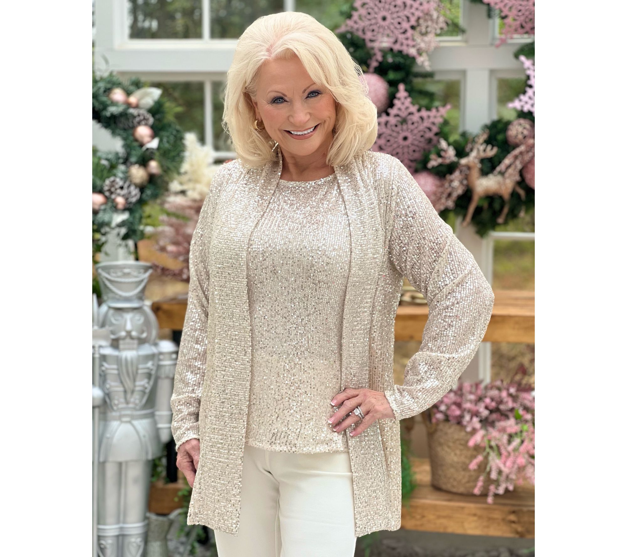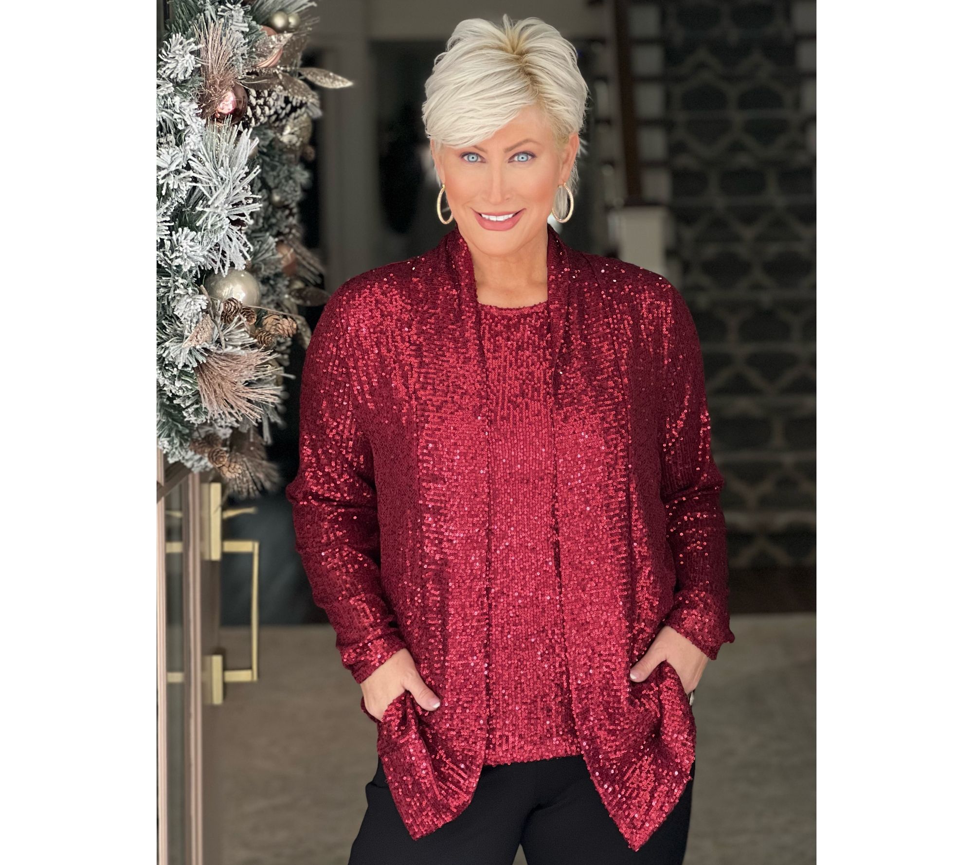 "As Is" Jingle Belles by Kim Gravel Sequin Mesh Open Front Topper