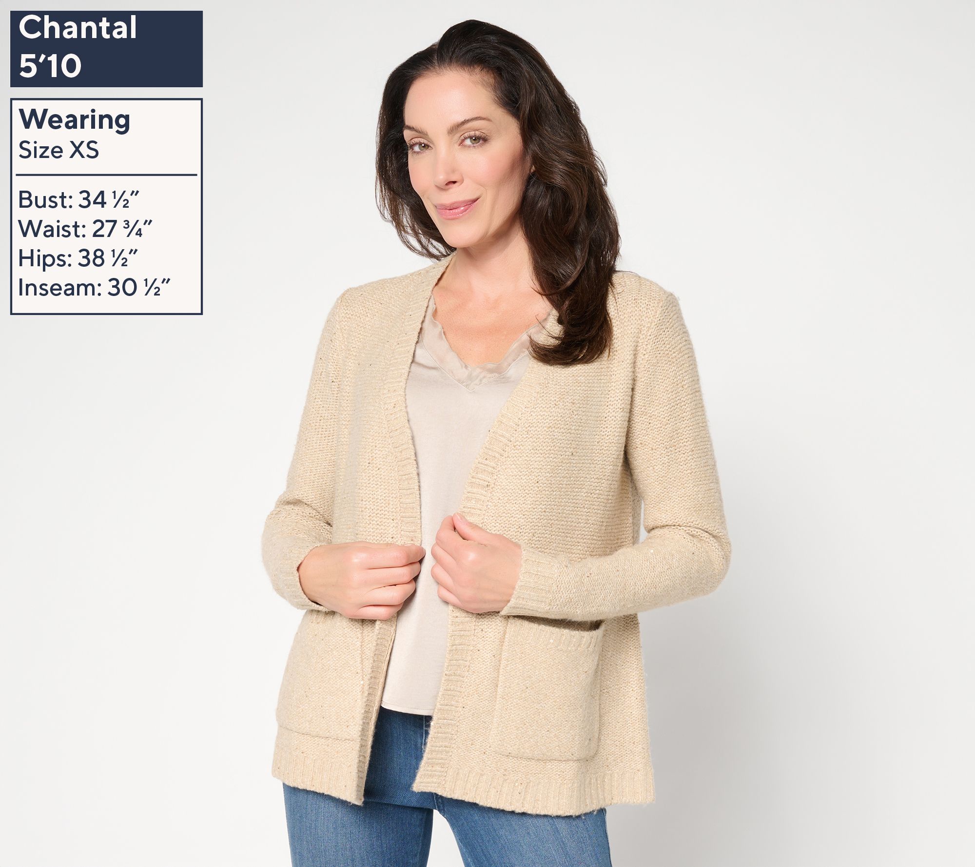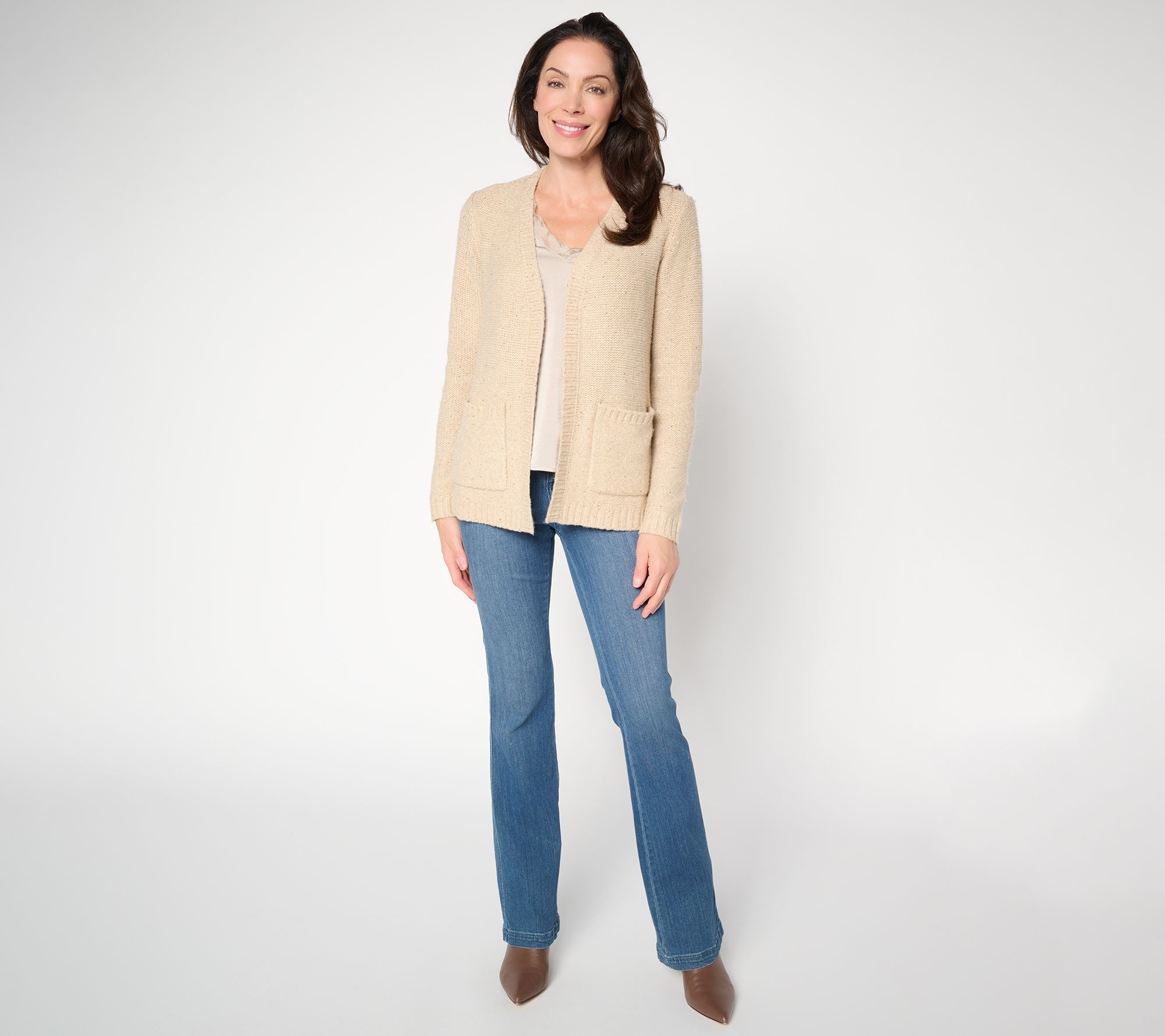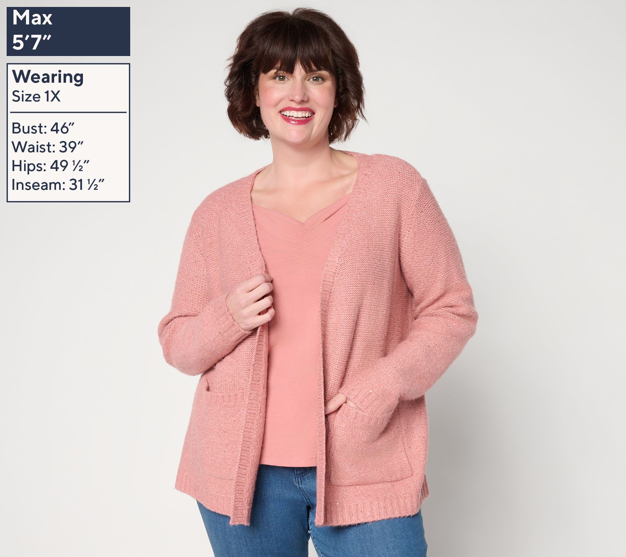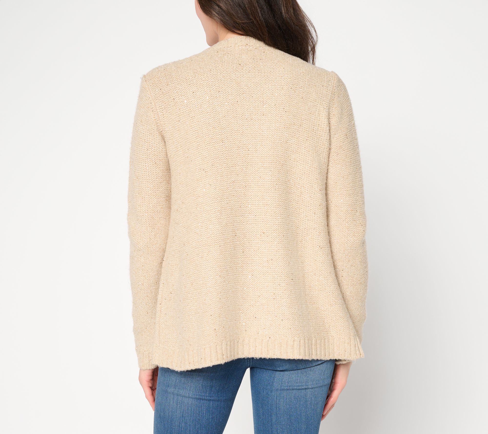 It's sparkle season! If subtle shine is your vibe, Kim Gravel's got you covered with this twinkly open-front cardi. It's a casual-cute way to dress for the holidays (while visions of sugarplums dance in your head). From Jingle Belles by Kim Gravel.