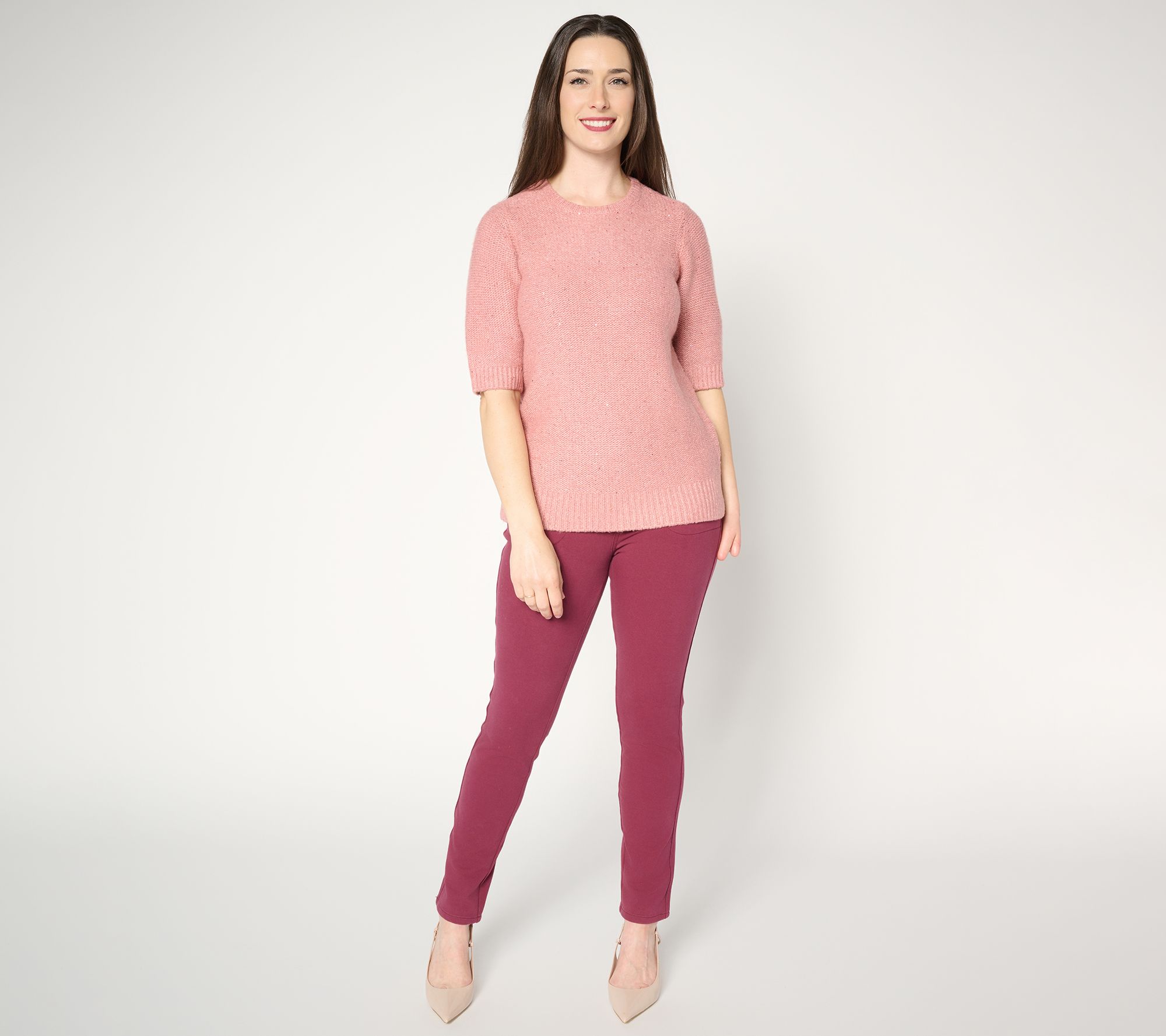 Hello, holidays! Time to embrace festive sparkle for alll the seasonal gatherings with Kim Gravel's Sugarplum sweater shell. The soft knit features shimmering accents, a comfortable crewneck, and elbow-length sleeves, making it easy to layer under a cardi (for caroling!). From Jingle Belles by Kim Gravel.
