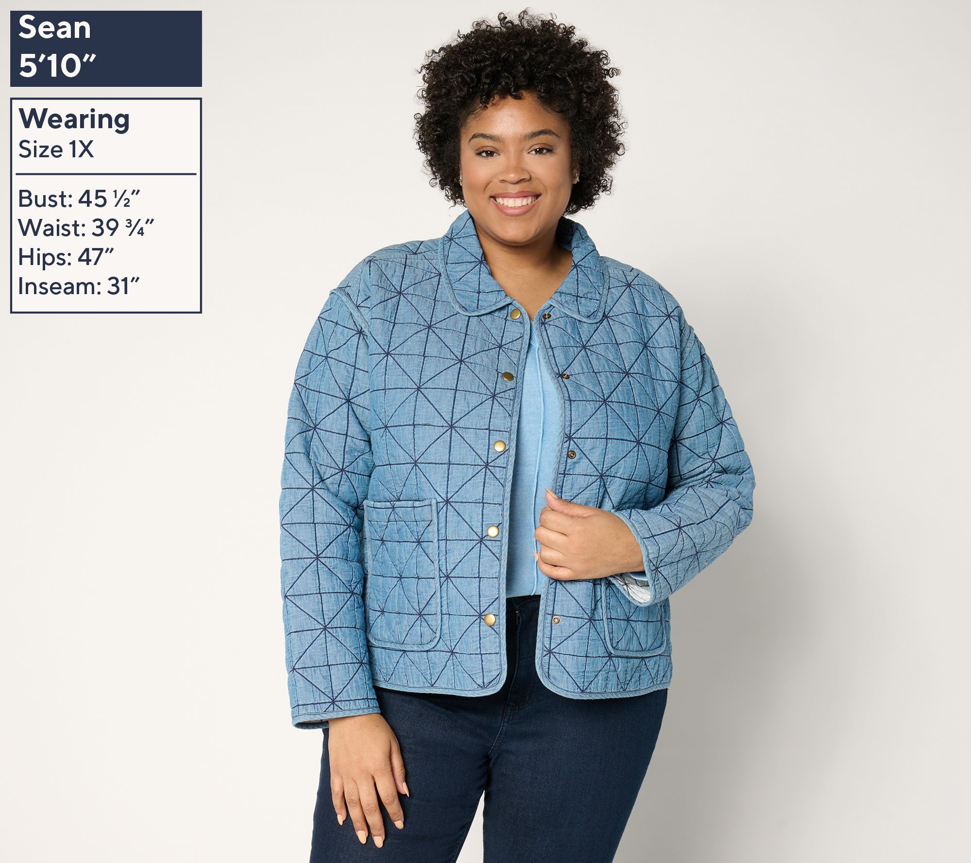 "As Is" Joan Rivers 100% Cotton Reverse Quilted Denim Jacket