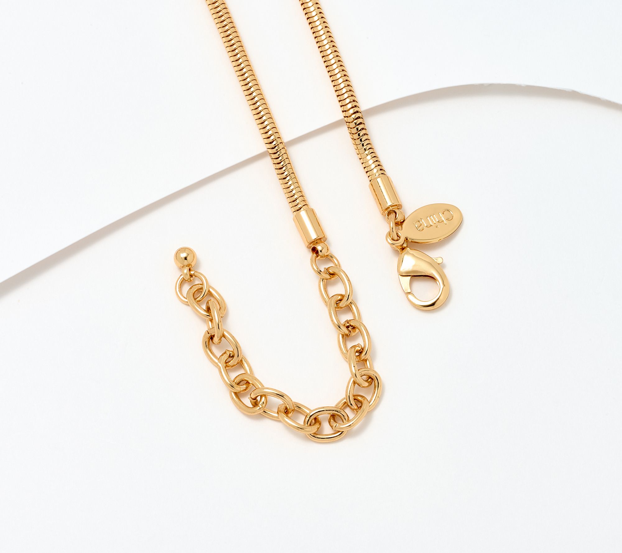 • Chain secures with lobster claw clasp