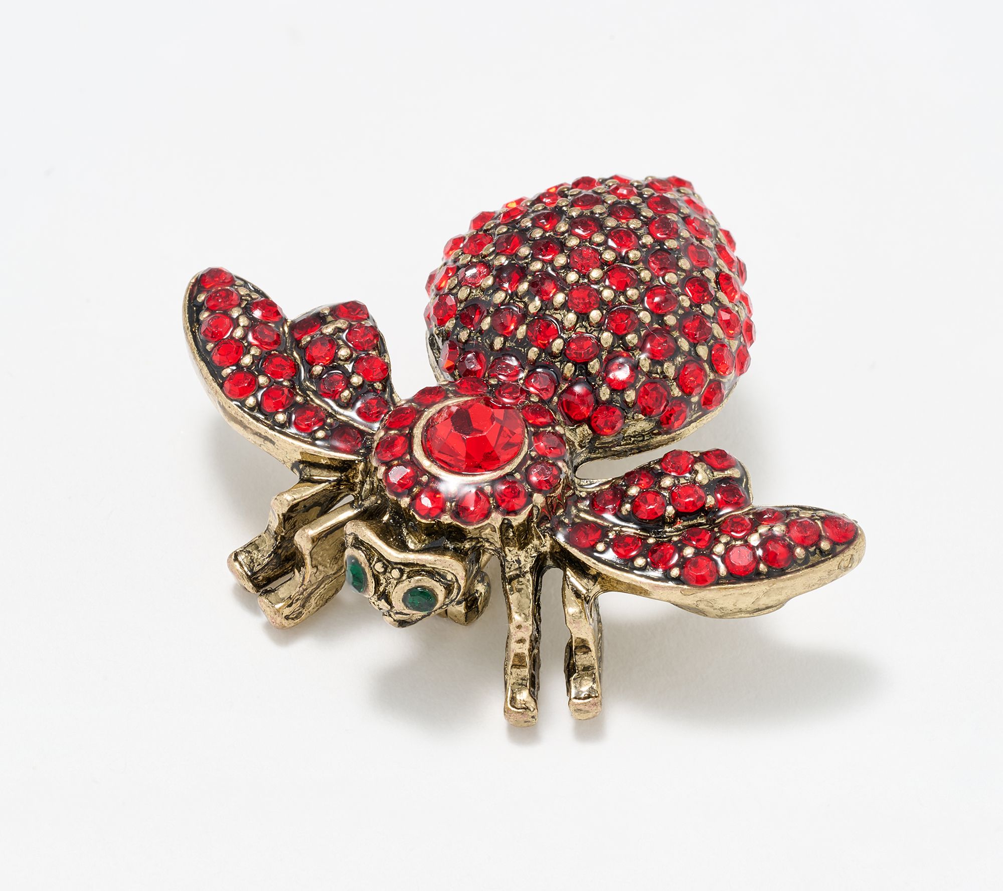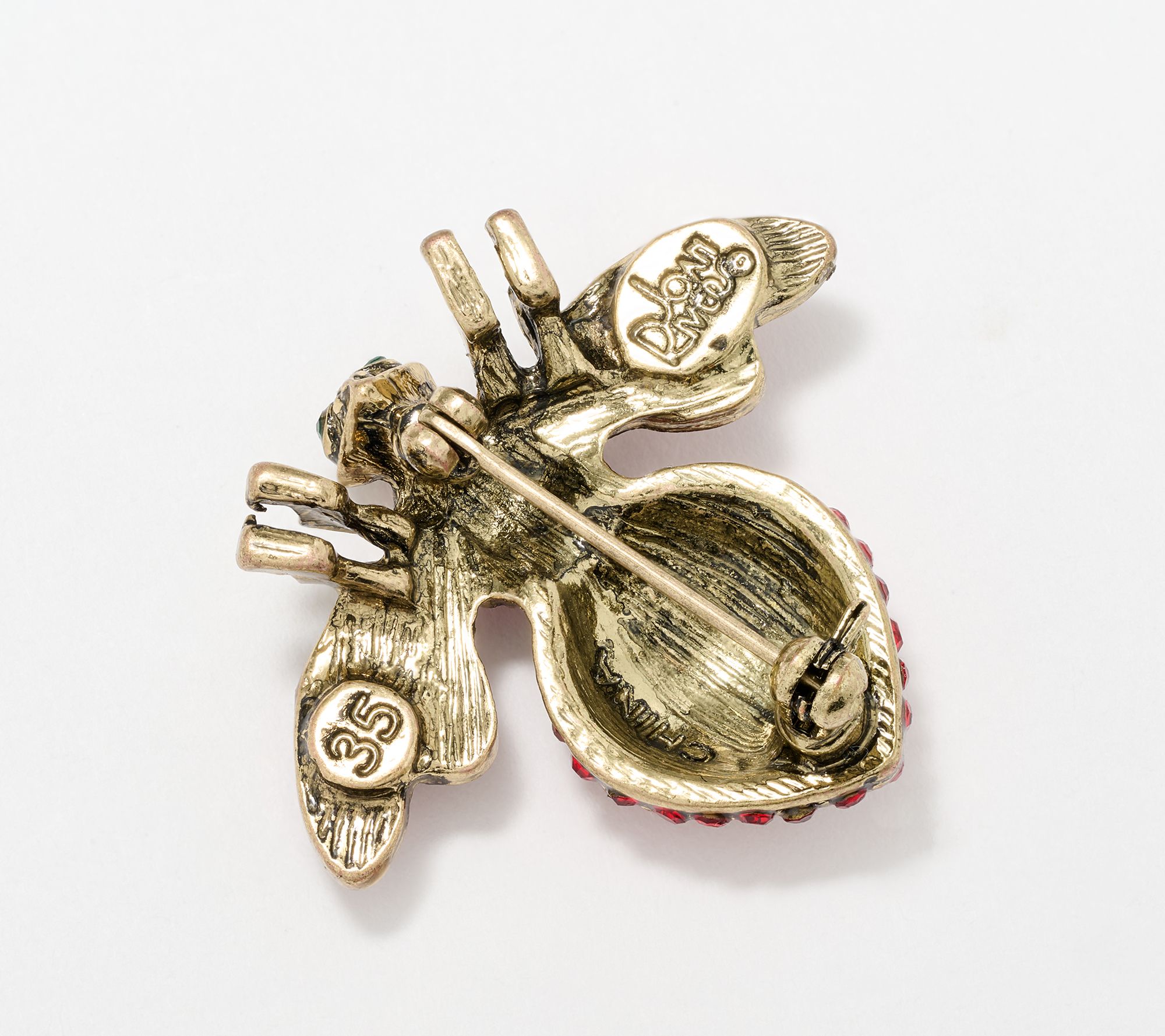 • Crystal-encrusted bee motif; green crystal eyes; marked with "35" on the back wing