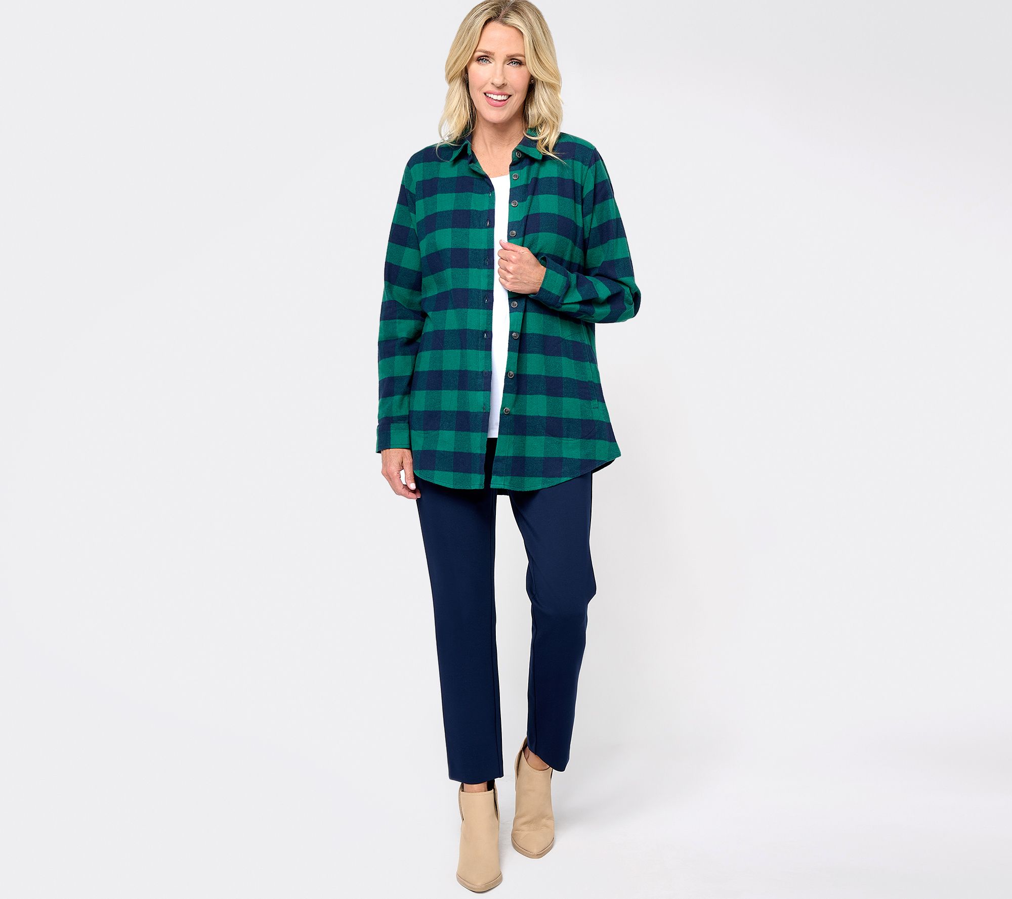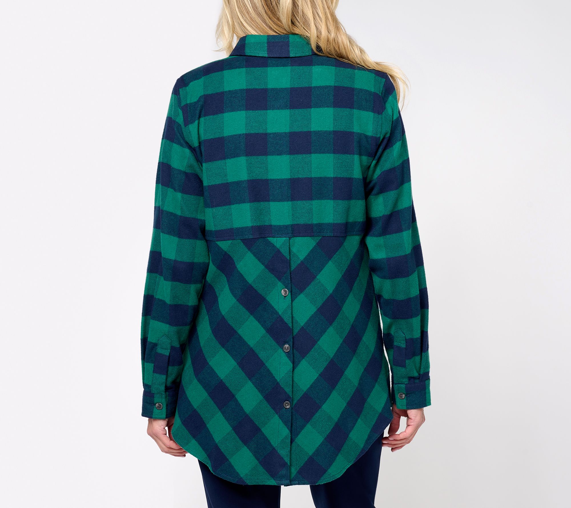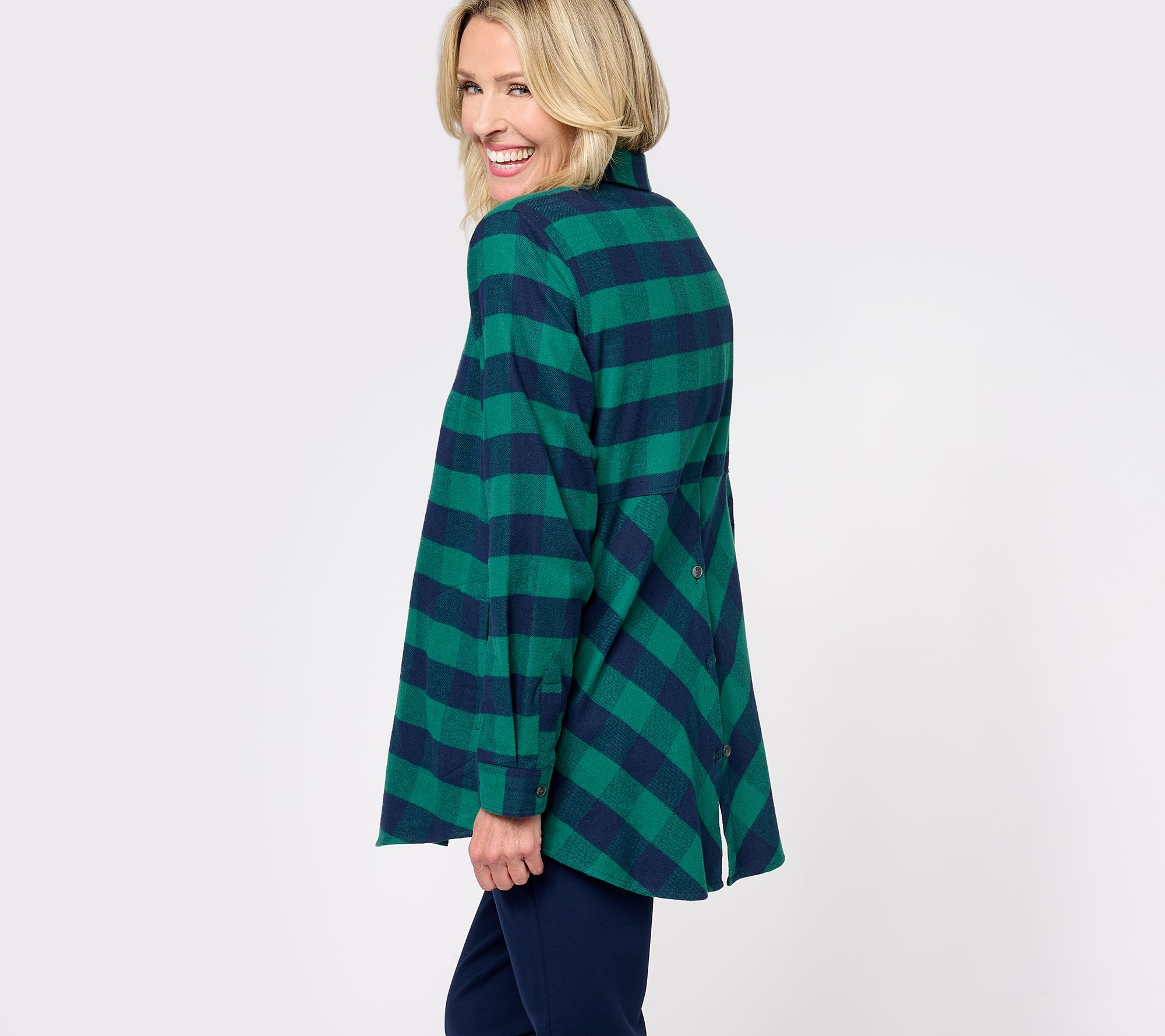 "As Is" Joan Rivers Brushed Flannel Shirt with Back Buttons