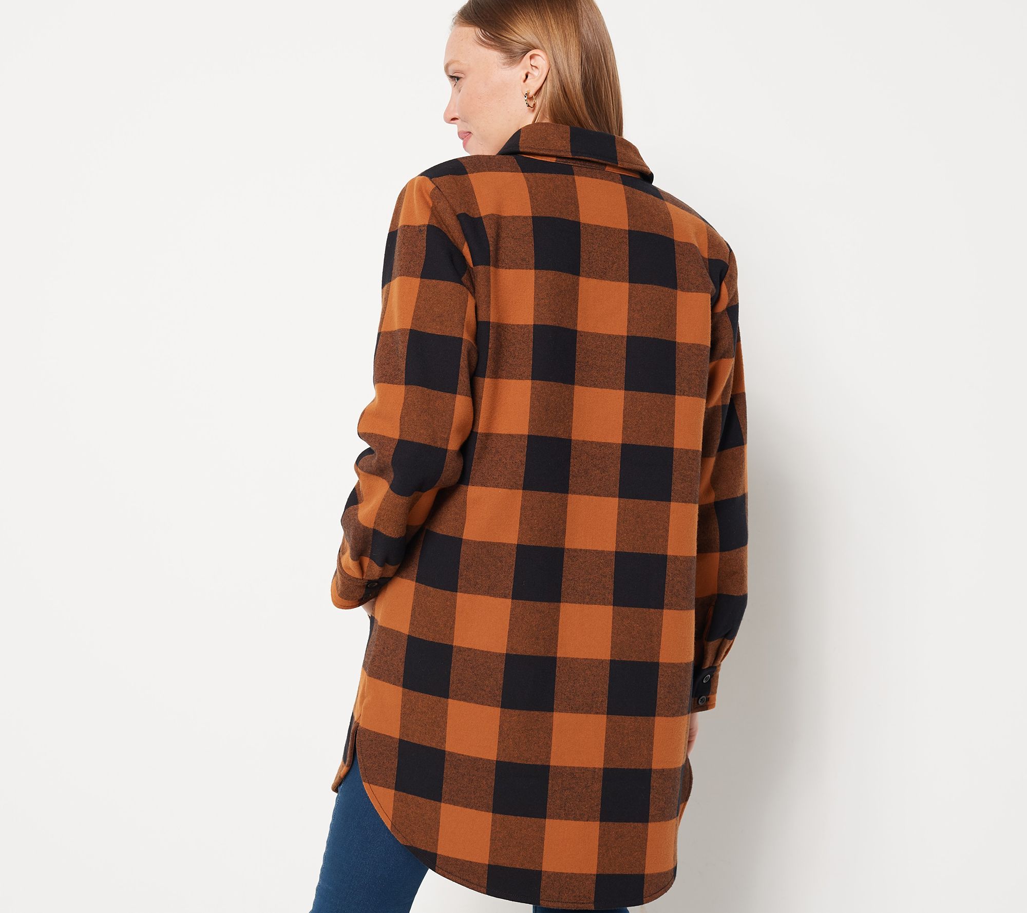 "As Is" Joan Rivers Buffalo Check Shirt Jacket with Fleece Lining