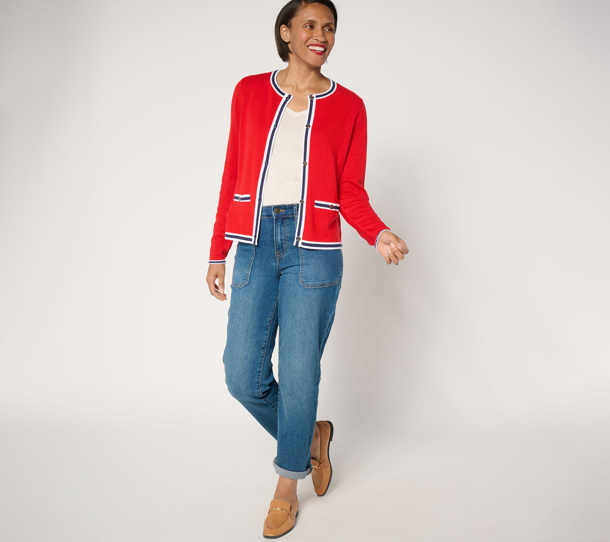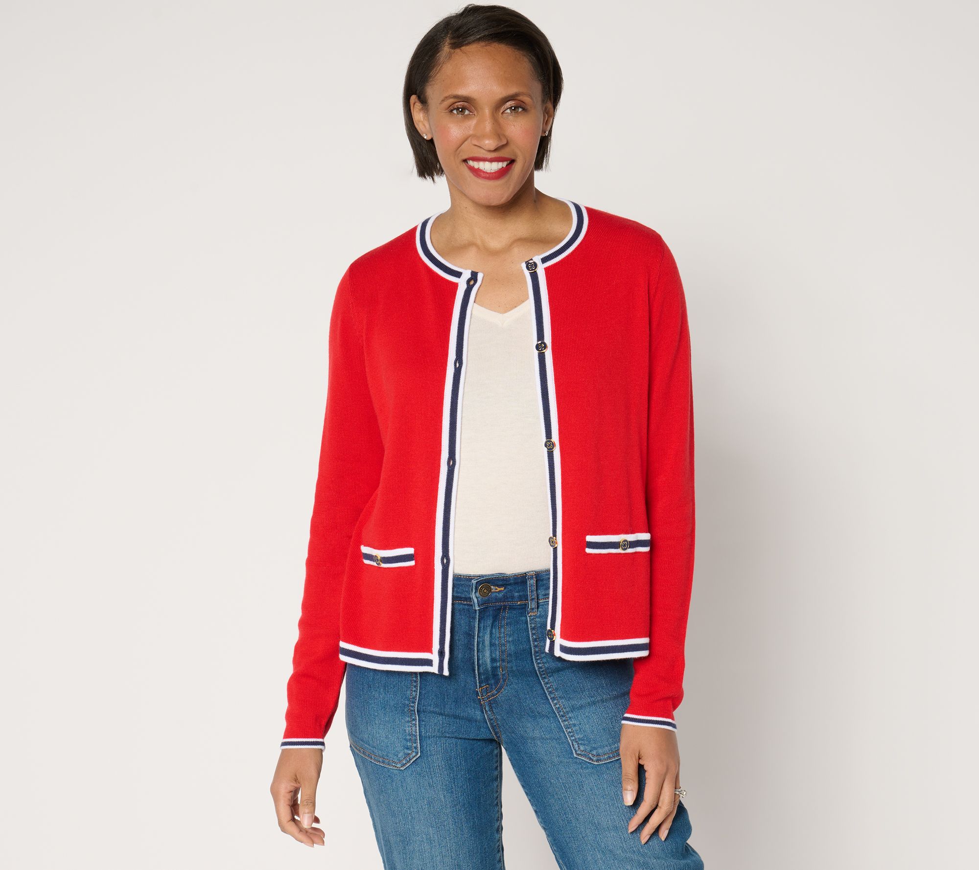 Refresh your wardrobe with this classic button-front sweater cardigan featuring elegant tipping details. The semi-fitted design follows the lines of your body, ensuring you look polished and feel comfortable all day long. Perfect for layering over your favorite tops, this cardigan is an effortless addition to any outfit. From Joan Rivers.