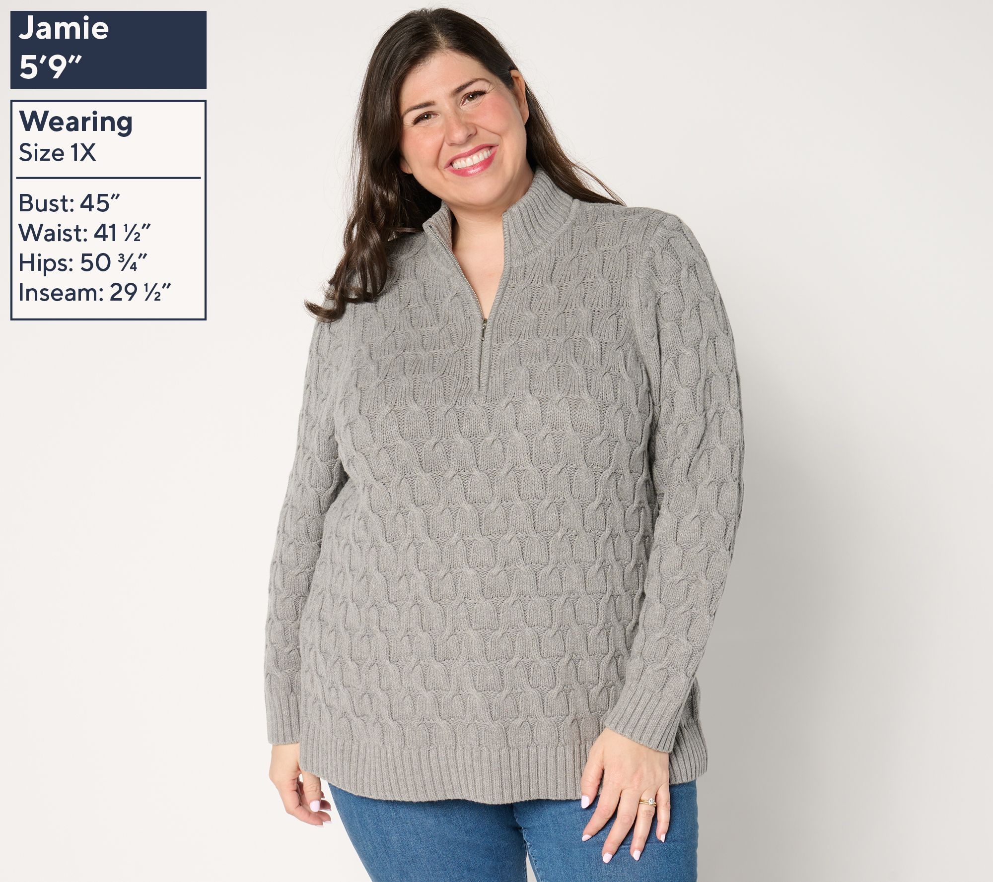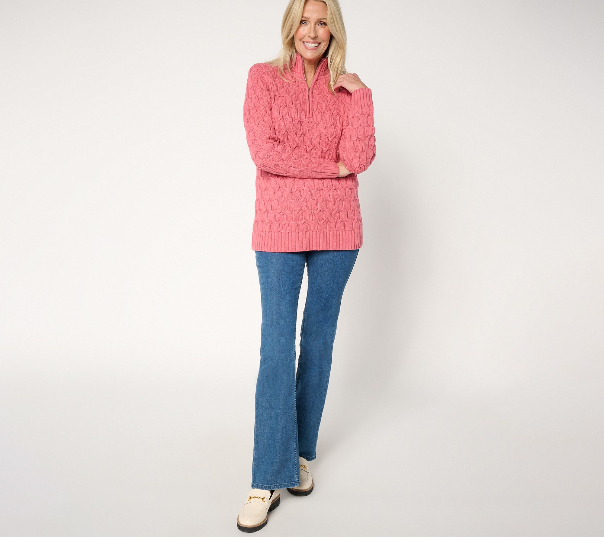 Cable knit with boutique-chic appeal, sub in this quarter-zip pullover on sweater-weather days and let your baggy sweatshirts take a vacay. From the Joan Rivers Classics Collection®.