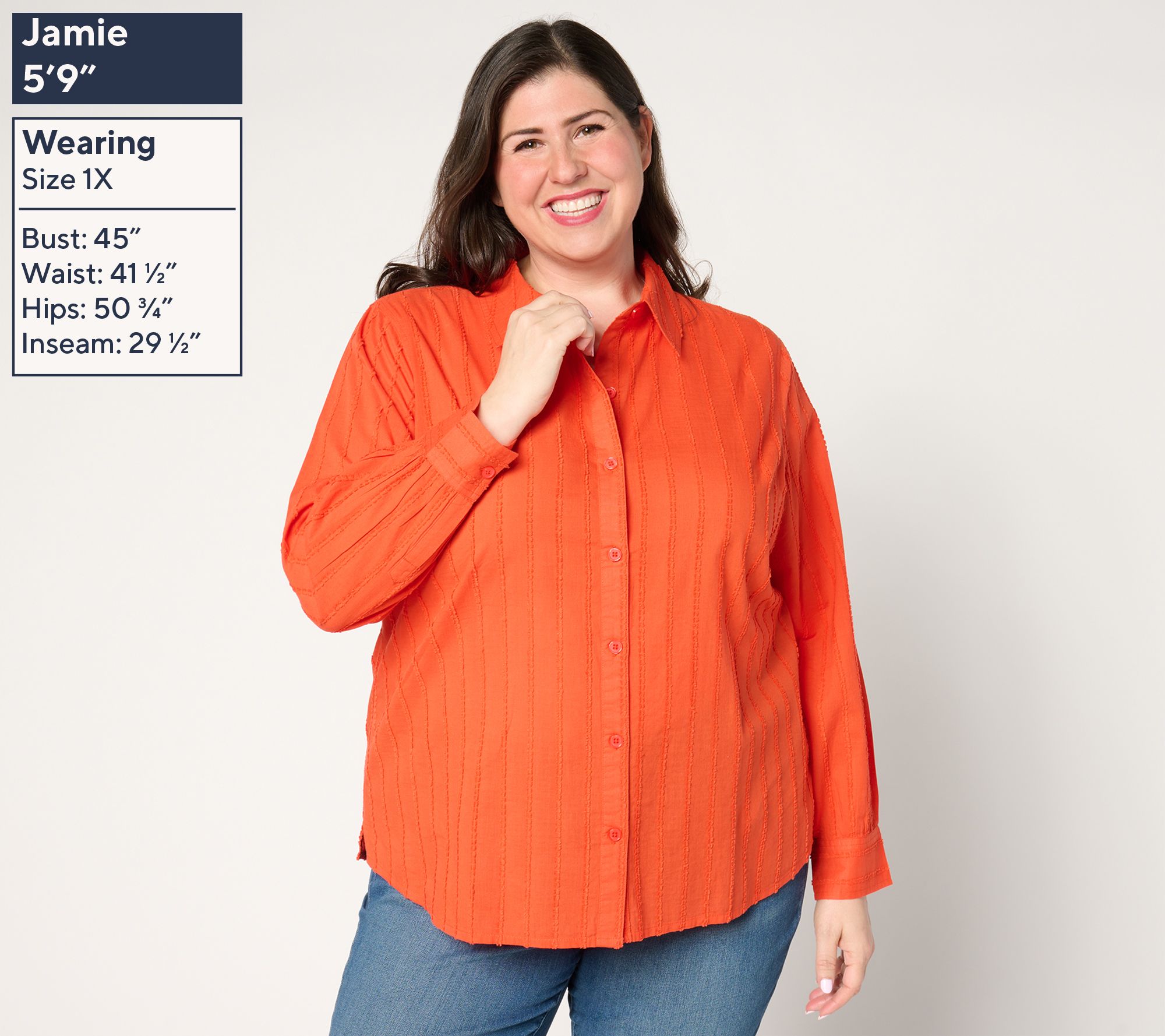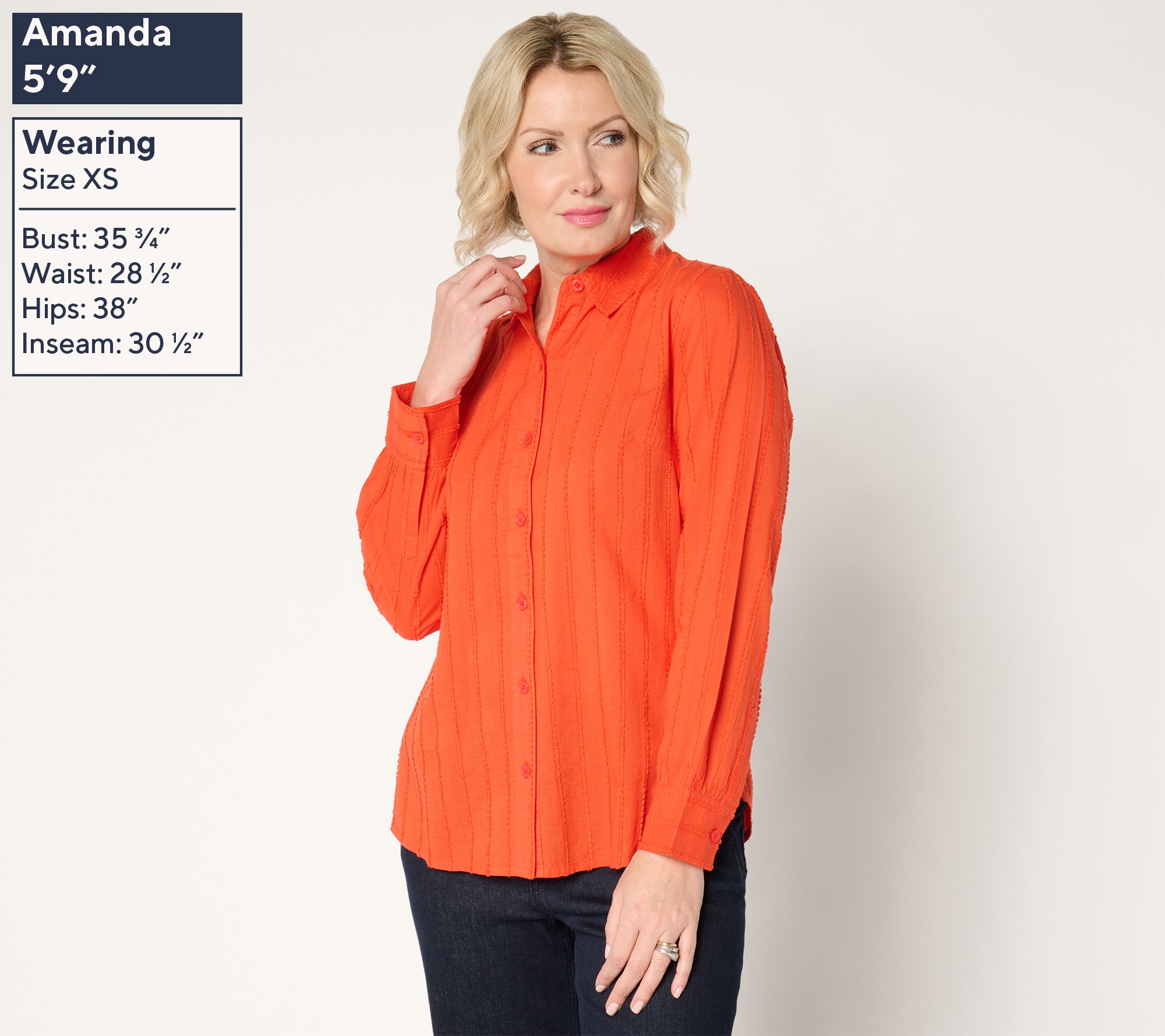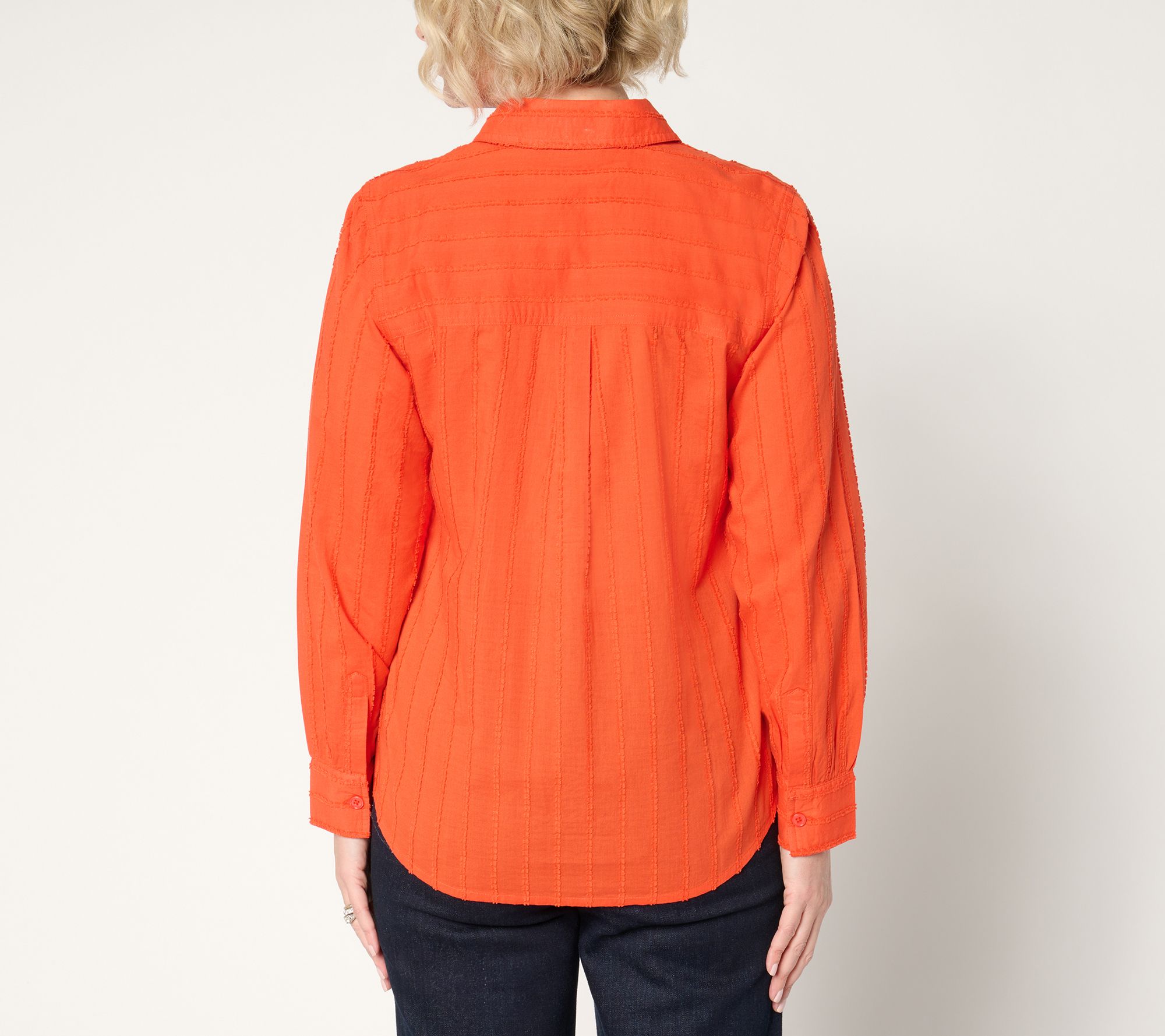 "As Is" Joan Rivers Cotton Dobby Patchwork Button Front Shirt