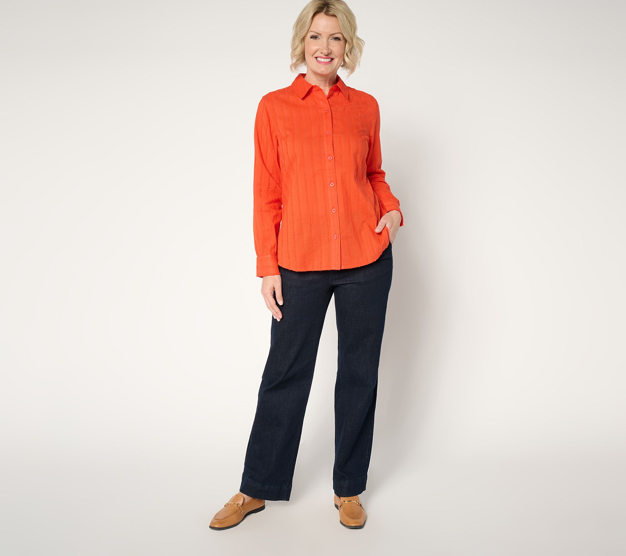 With its dobby patchwork design in comfy cotton, this button-front shirt reflects an easygoing elegance that's ideal for both work and weekend adventures. Equally attractive with your lived-in denim as it is polished suiting. From the Joan Rivers Classics Collection®.