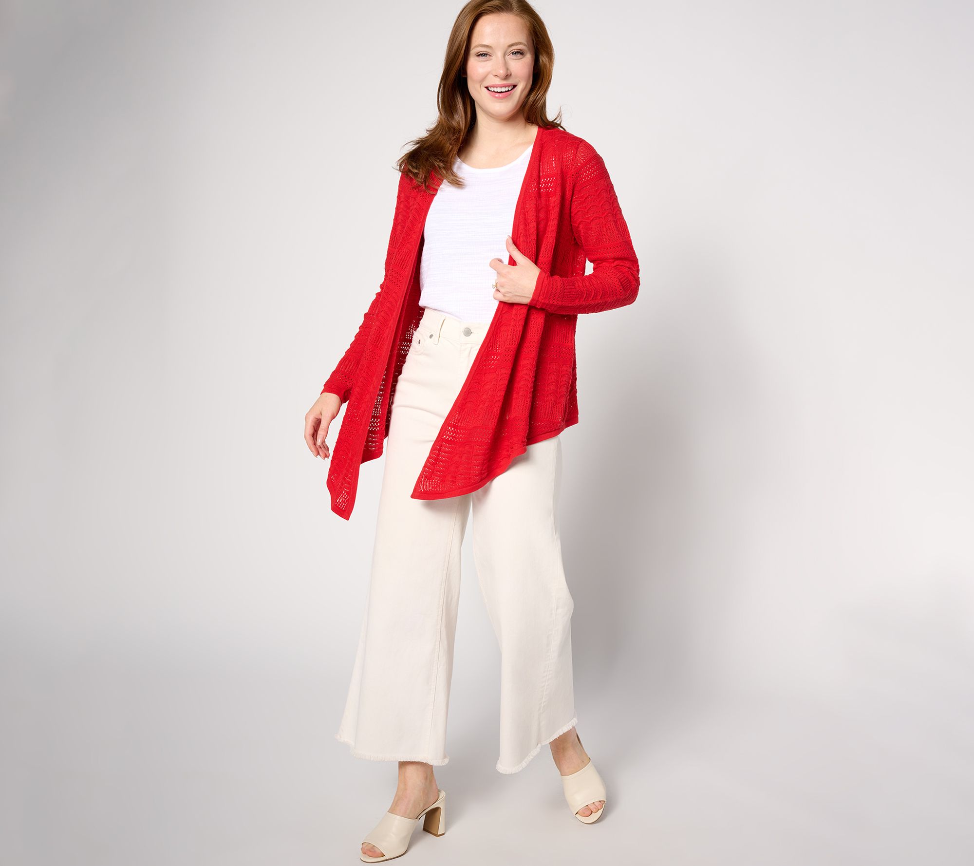 Have a spring fling with this delicately crocheted sweater. Layered over a pretty tank or dress, the flowy and relaxed style banishes the bulky winter-wear in favor of something sweeter. From the Joan Rivers Classics Collection®.
