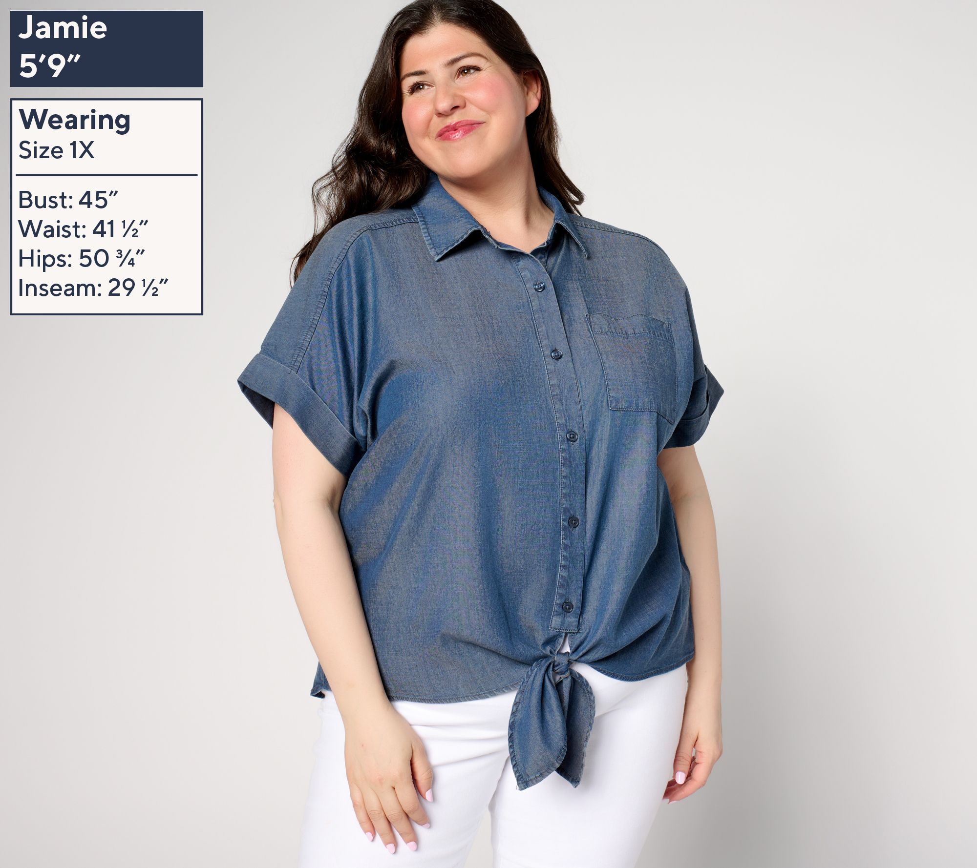 • Features: dolman sleeves, tie front, hidden placket, forward shoulder seam, chest pocket, self front tie, curved hem