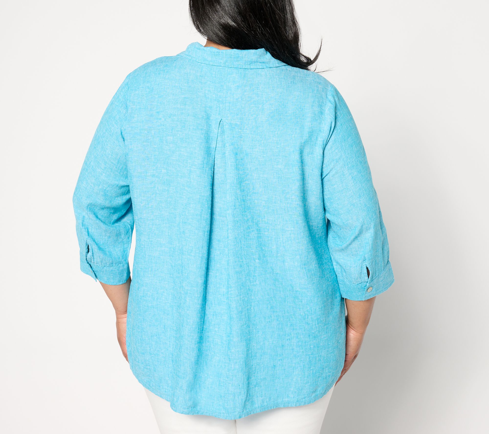 "As Is" Joan Rivers Double Button Linen Boyfriend Swing Shirt