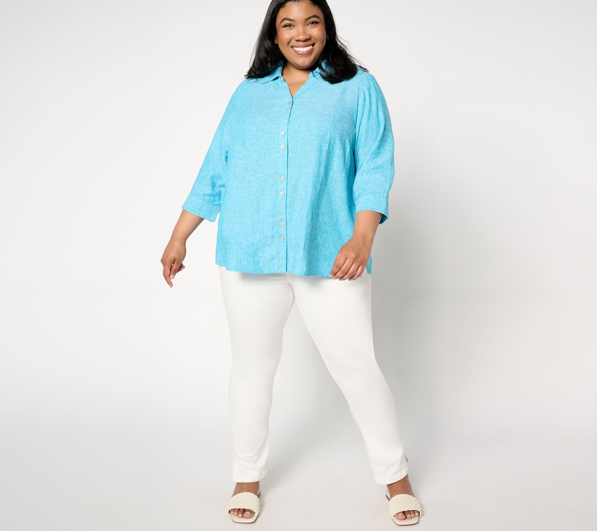 Ladies who love linen, you're in luck! This summer-savvy swing shirt helps keep you comfy when it's warm out, and it features a double-button-front design that goes from weekday business casual to weekend brunches and outdoor bistros without missing a beat. From the Joan Rivers Classics Collection®.