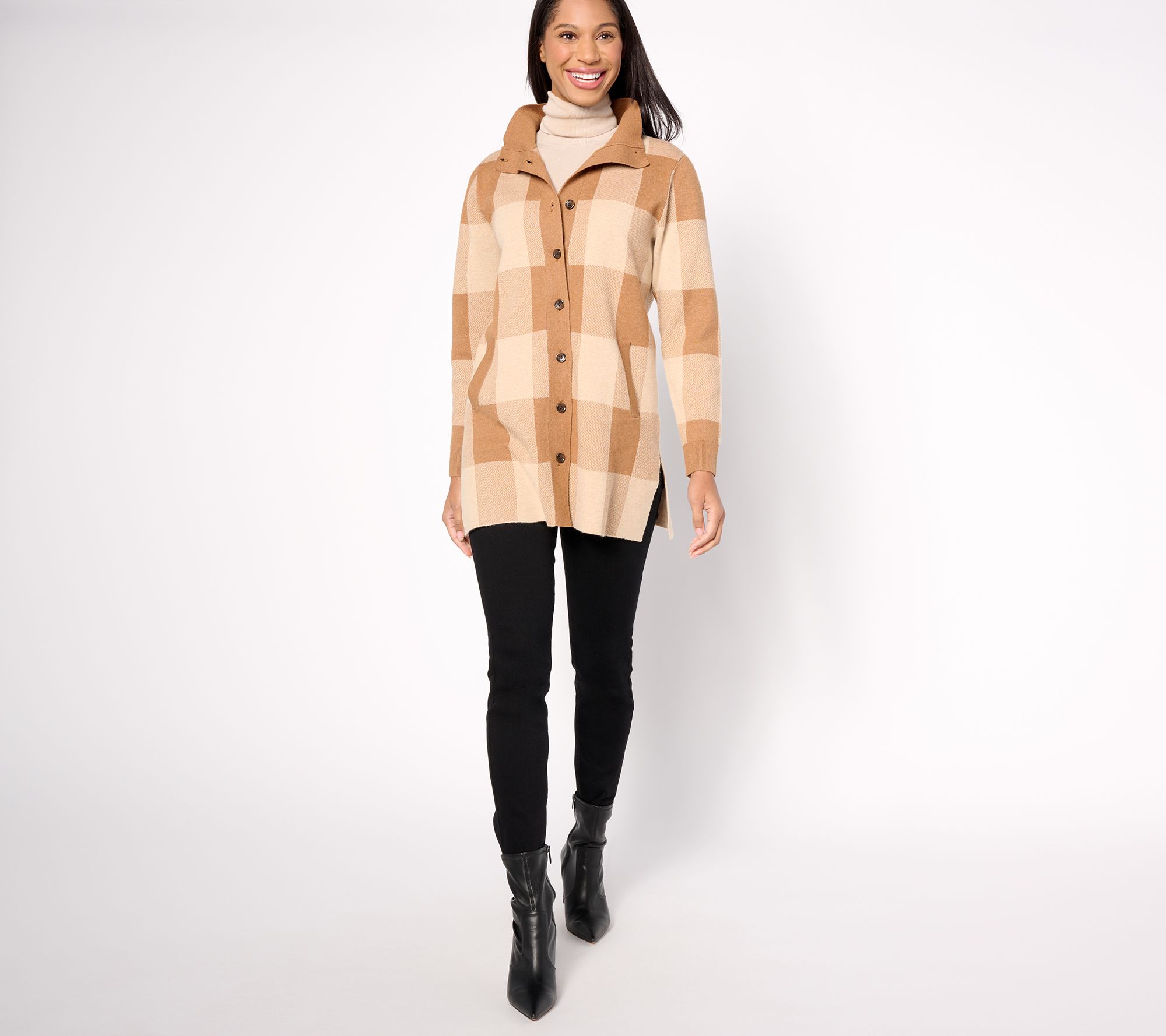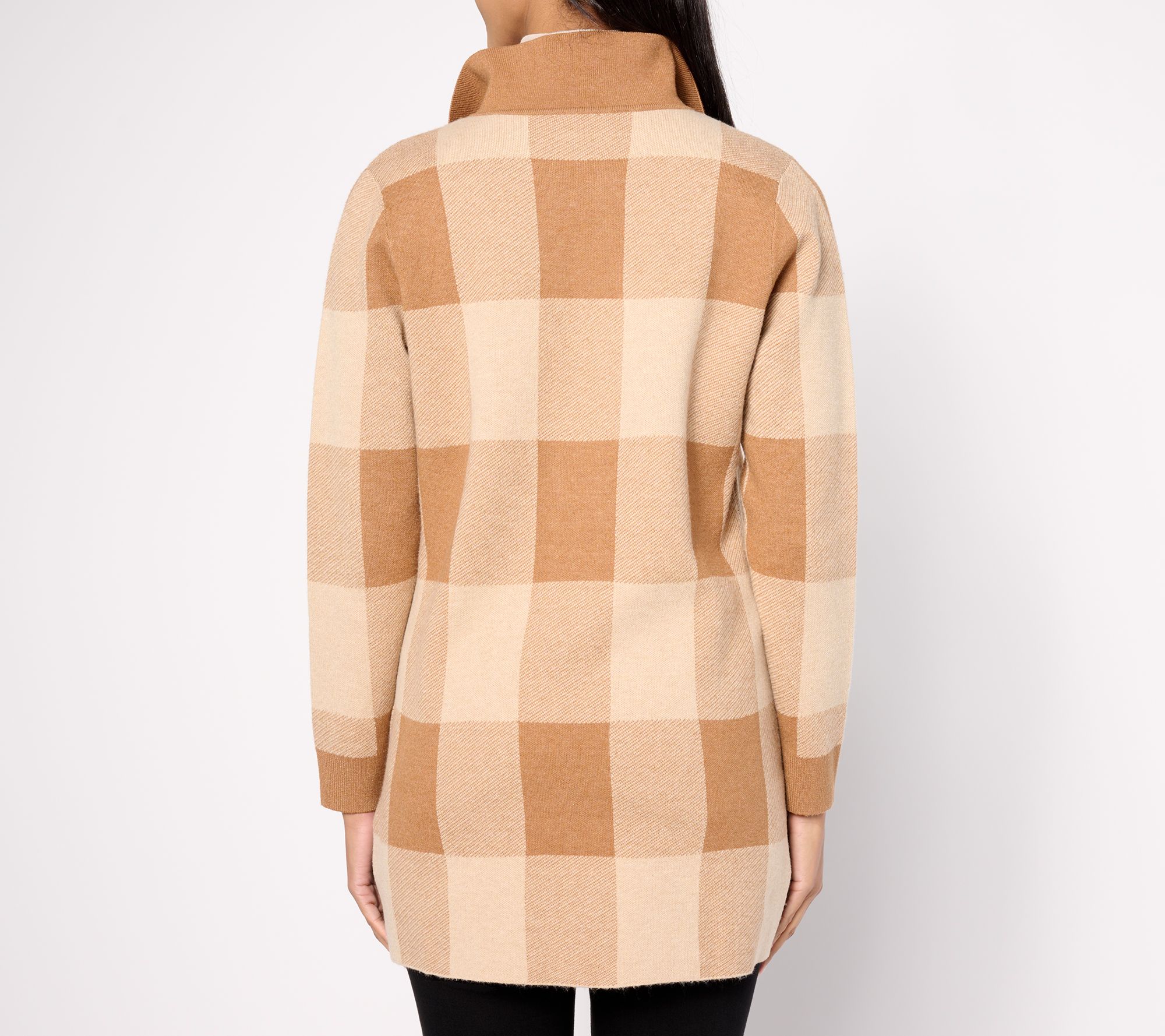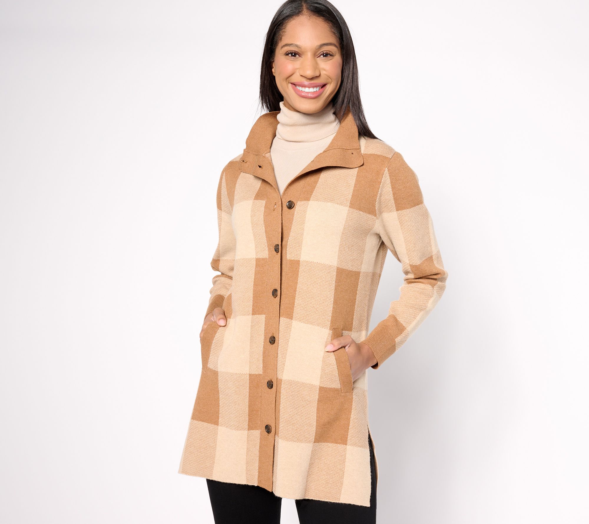 "As Is" Joan Rivers Jacquard Plaid Button Front Long Sleeve Cardigan