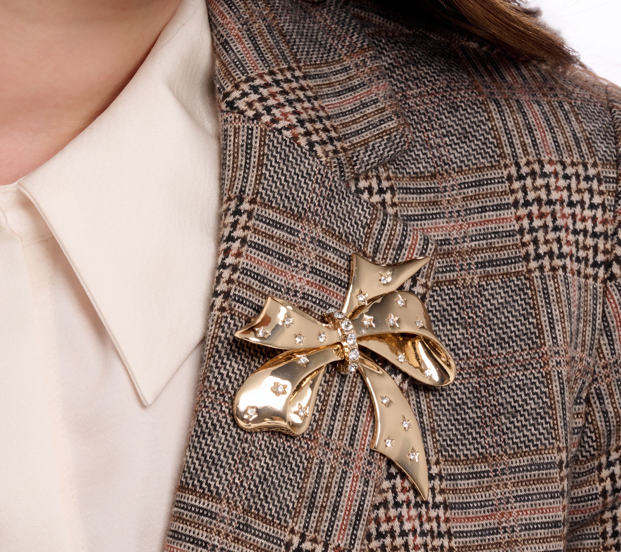 Inspired by Joan's original brooch for her Classics Collection, this miracle-set bow pin glimmers with scattered crystal accents for head-turning appeal. Fasten it to a blazer or scarf (or even a clutch) for elegance that channels vintage glamour and personality. From the Joan Rivers Classics Collection®.