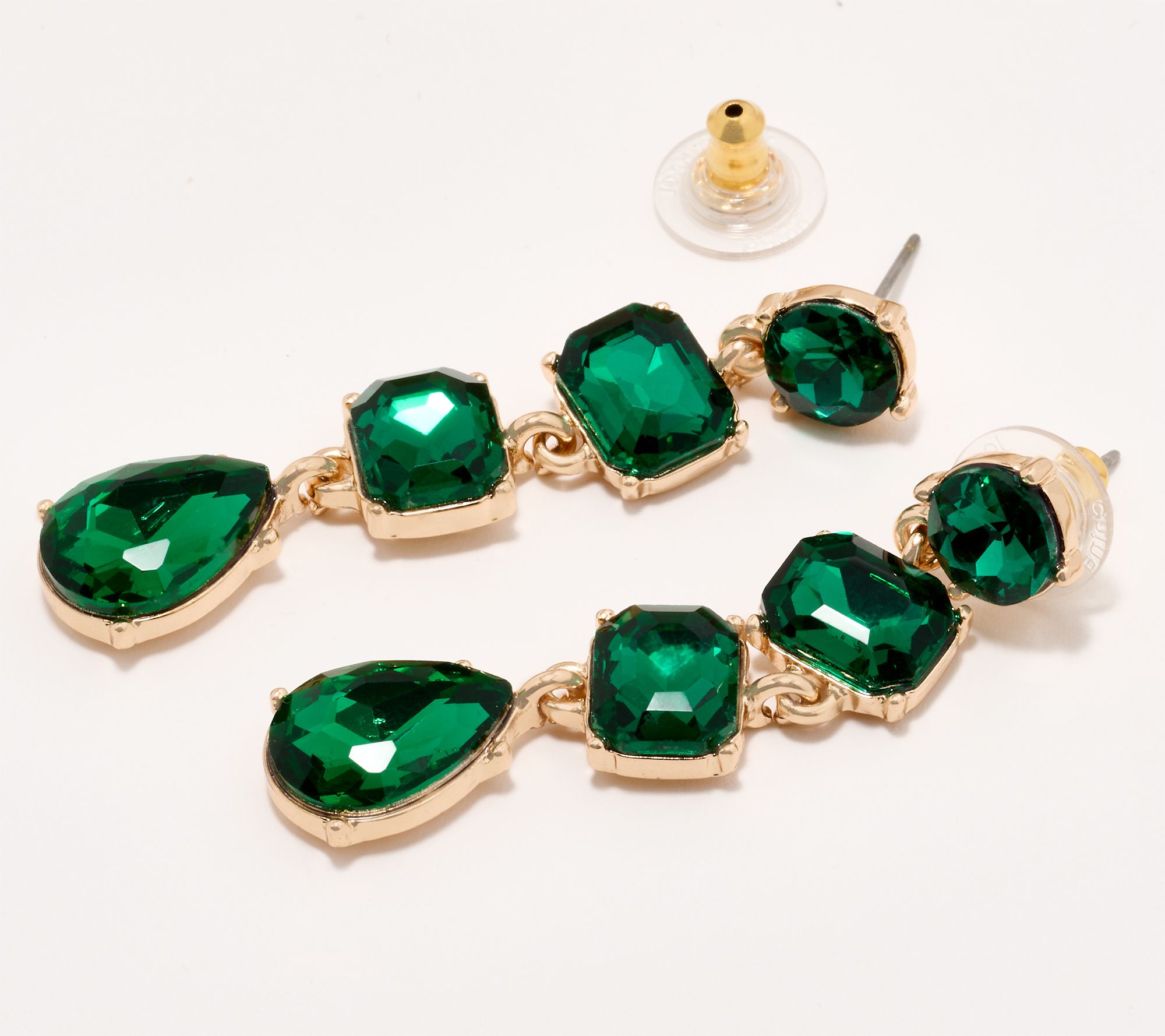 • Drop design; round crystal at post with two octagonal-shaped crystals and pear-shaped crystal below