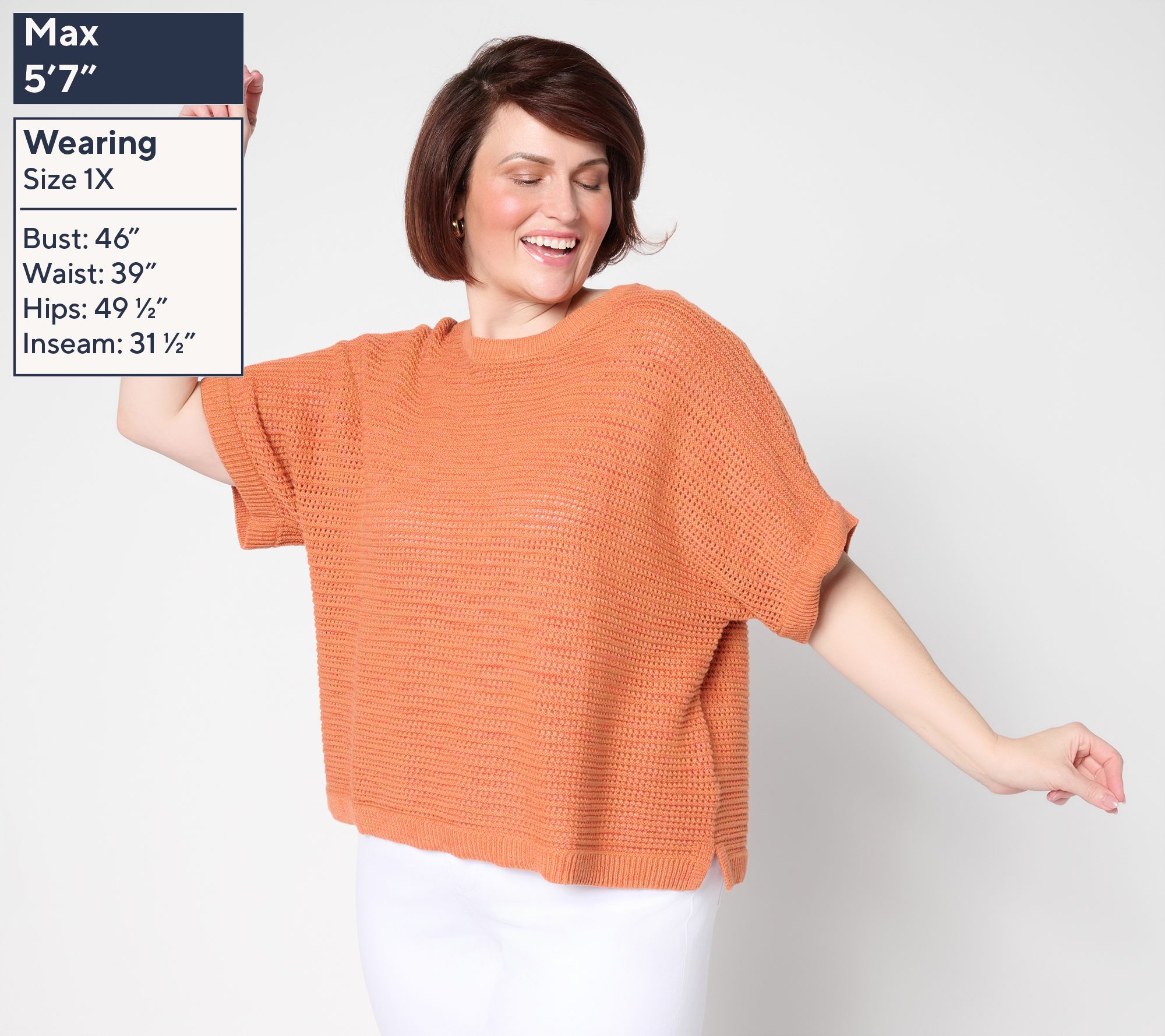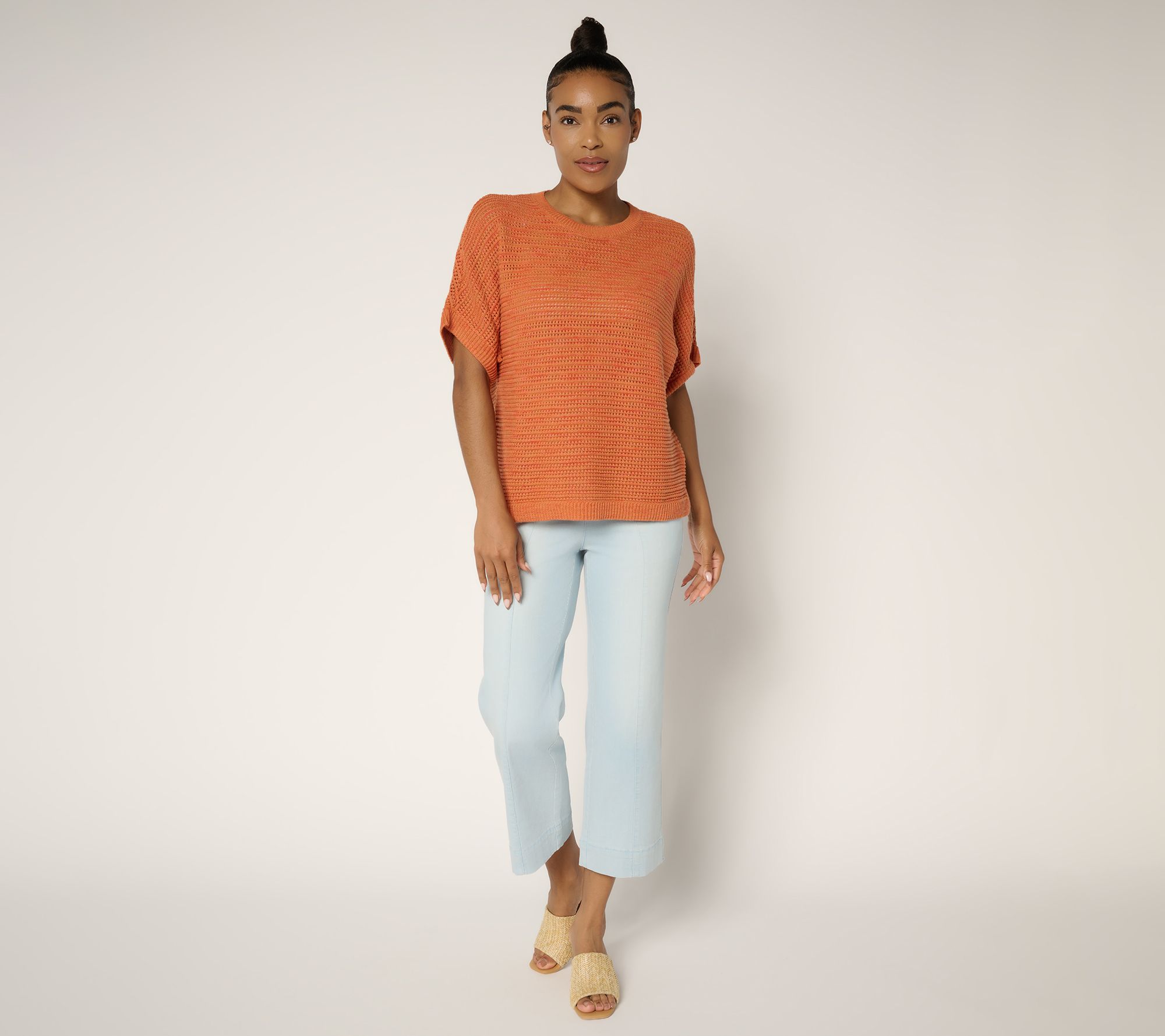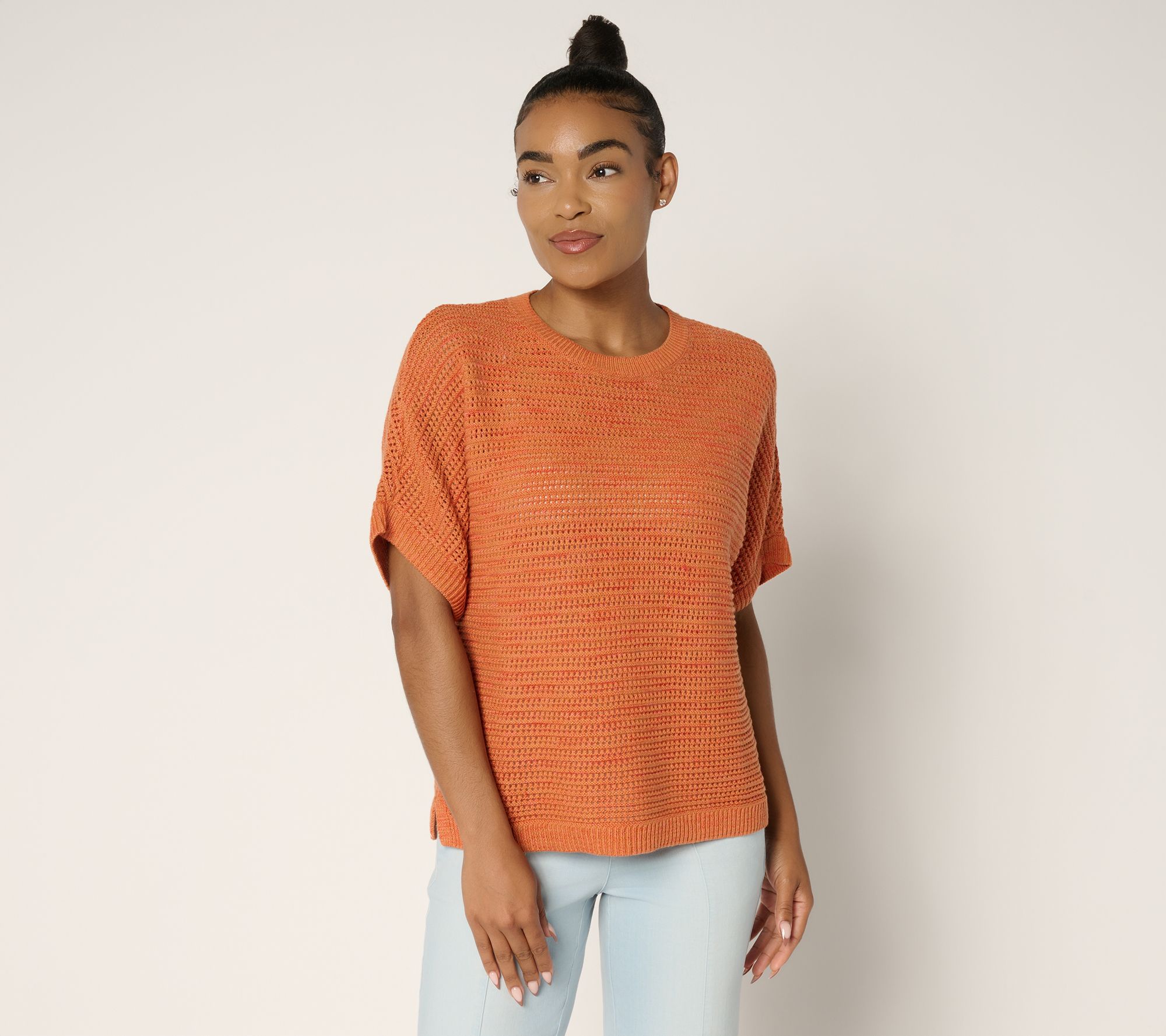 Summer breezes call for an airy aesthetic-- like this sweetly ribbed short-sleeve sweater. The open-knit design and relaxed fit offer a lightweight feel with ample movement, so you can enjoy the extra coverage without feeling confined. From the Joan Rivers Classics Collection®.