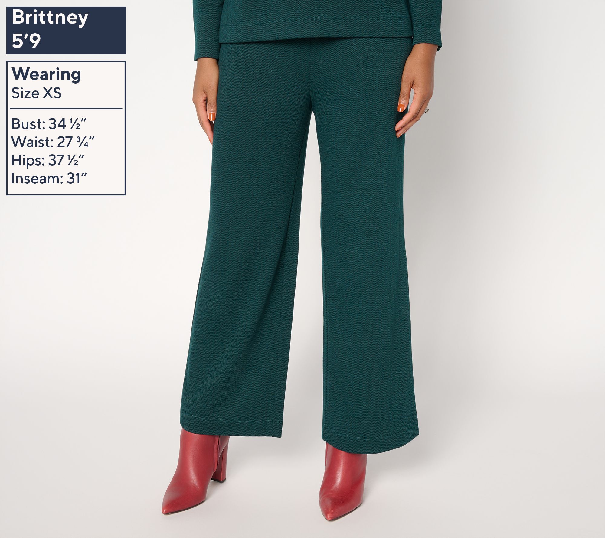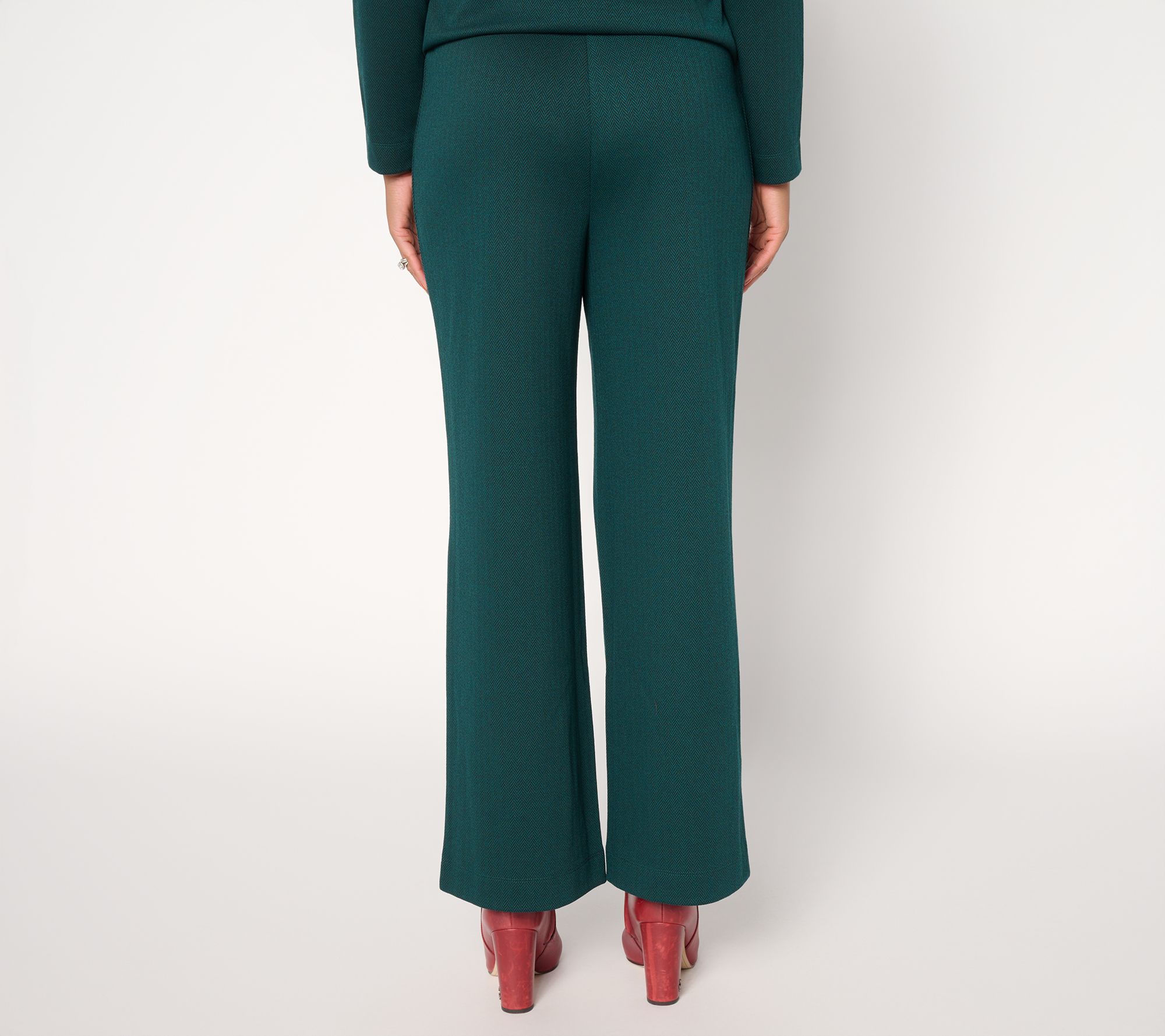 Commuter mornings or evening dinner dates feel effortless in these knit herringbone wide-leg pants. The easy pull-on style with an elastic waistband invites all-day comfort, while the tailored silhouette adds a polished edge to your favorite tops and footwear. From the Joan Rivers Classics Collection®.