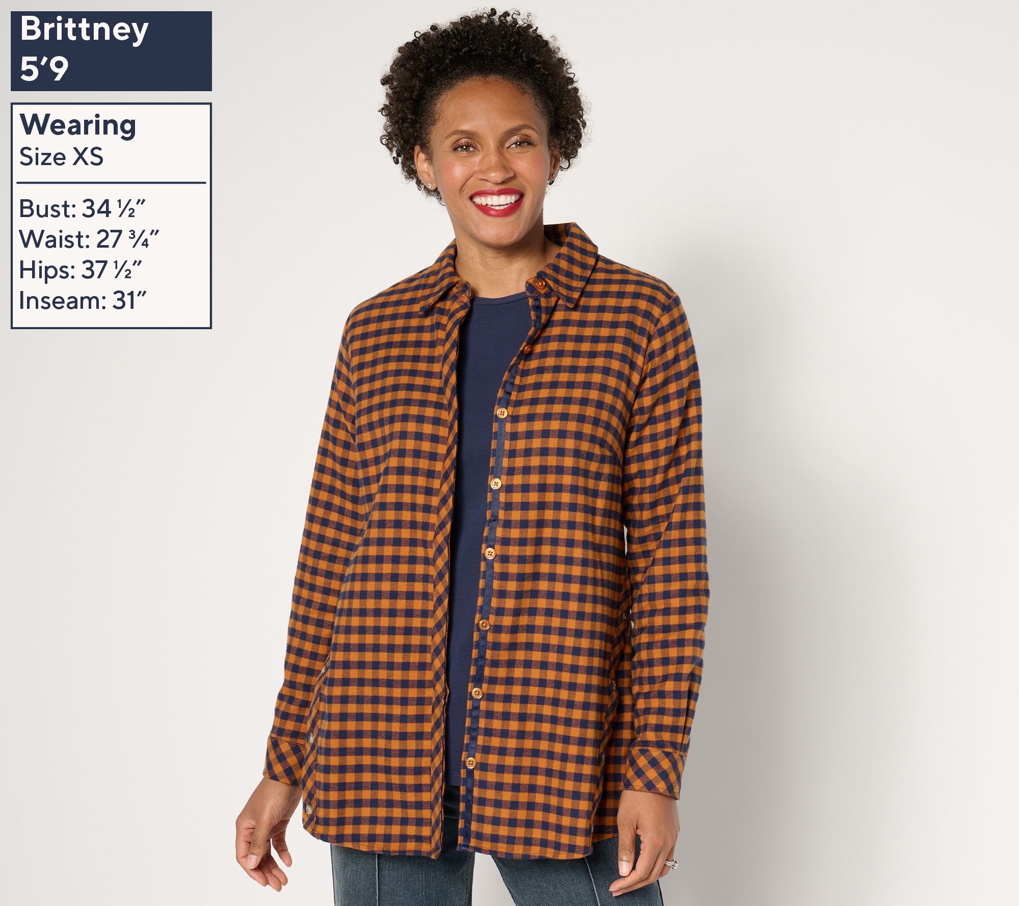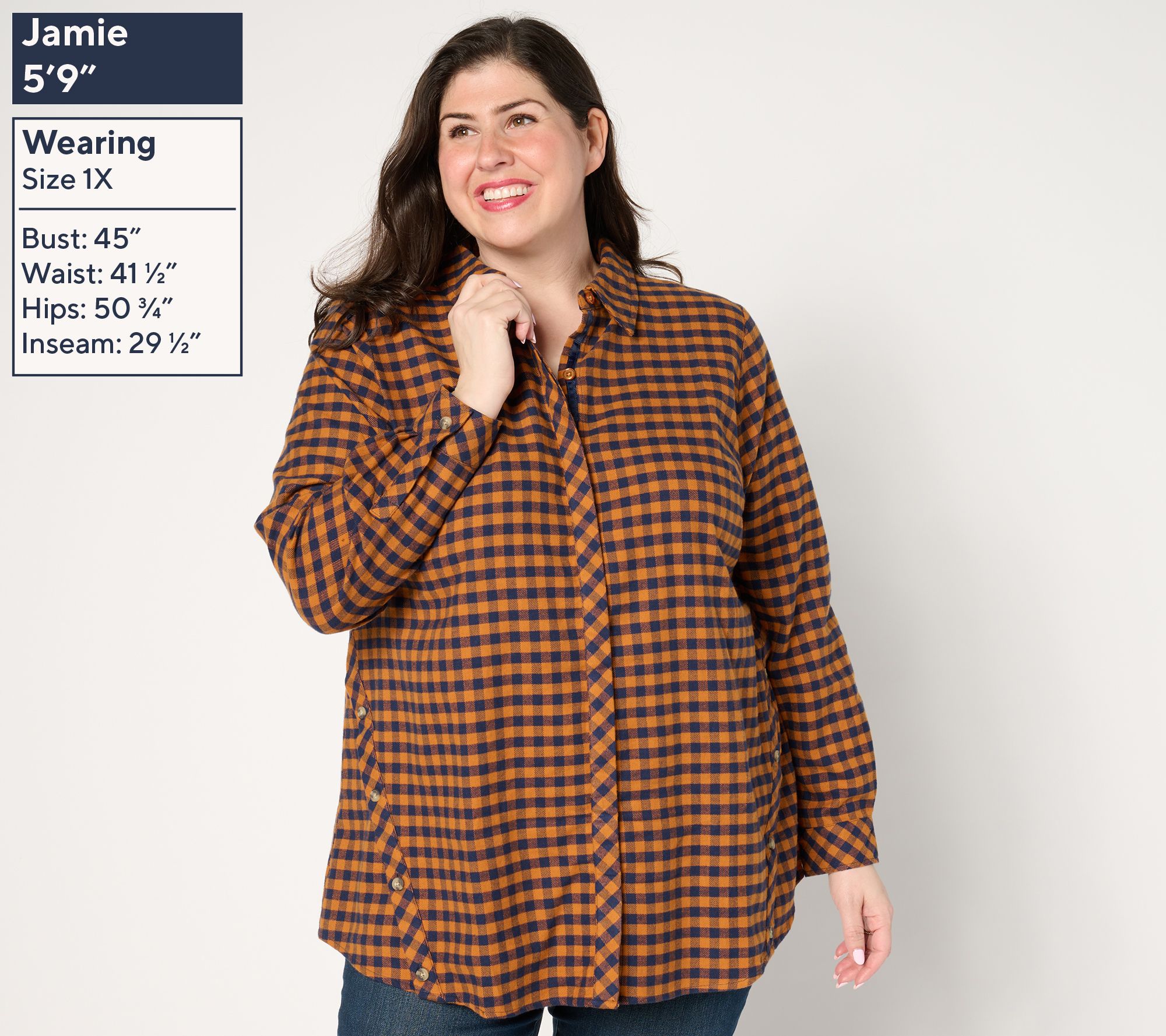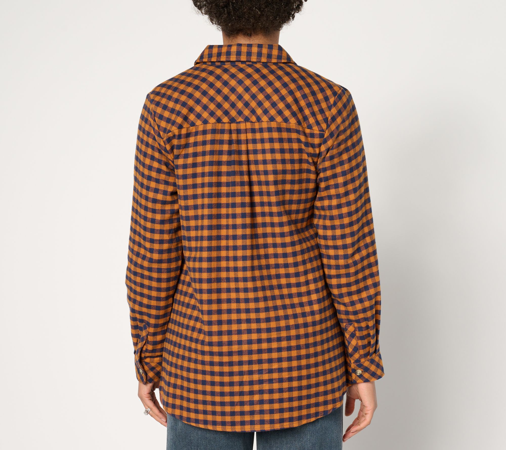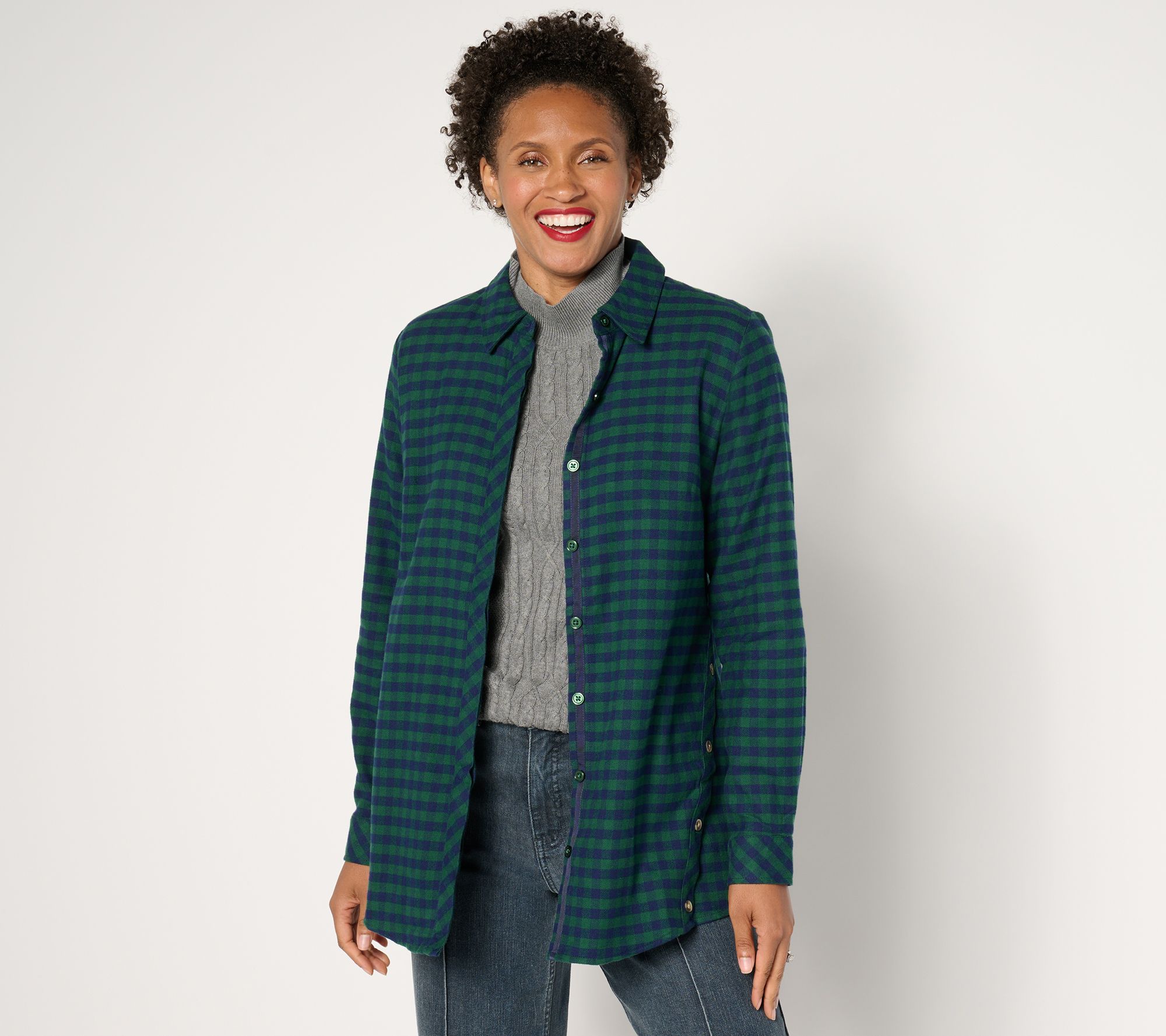 Your feel-good favorite found. This cotton flannel shirt boasts a subtle swing silhouette, giving the classic style a flattering fit whether you're layering it over a tee or wearing it buttoning it up. From the Joan Rivers Classic Collection®.