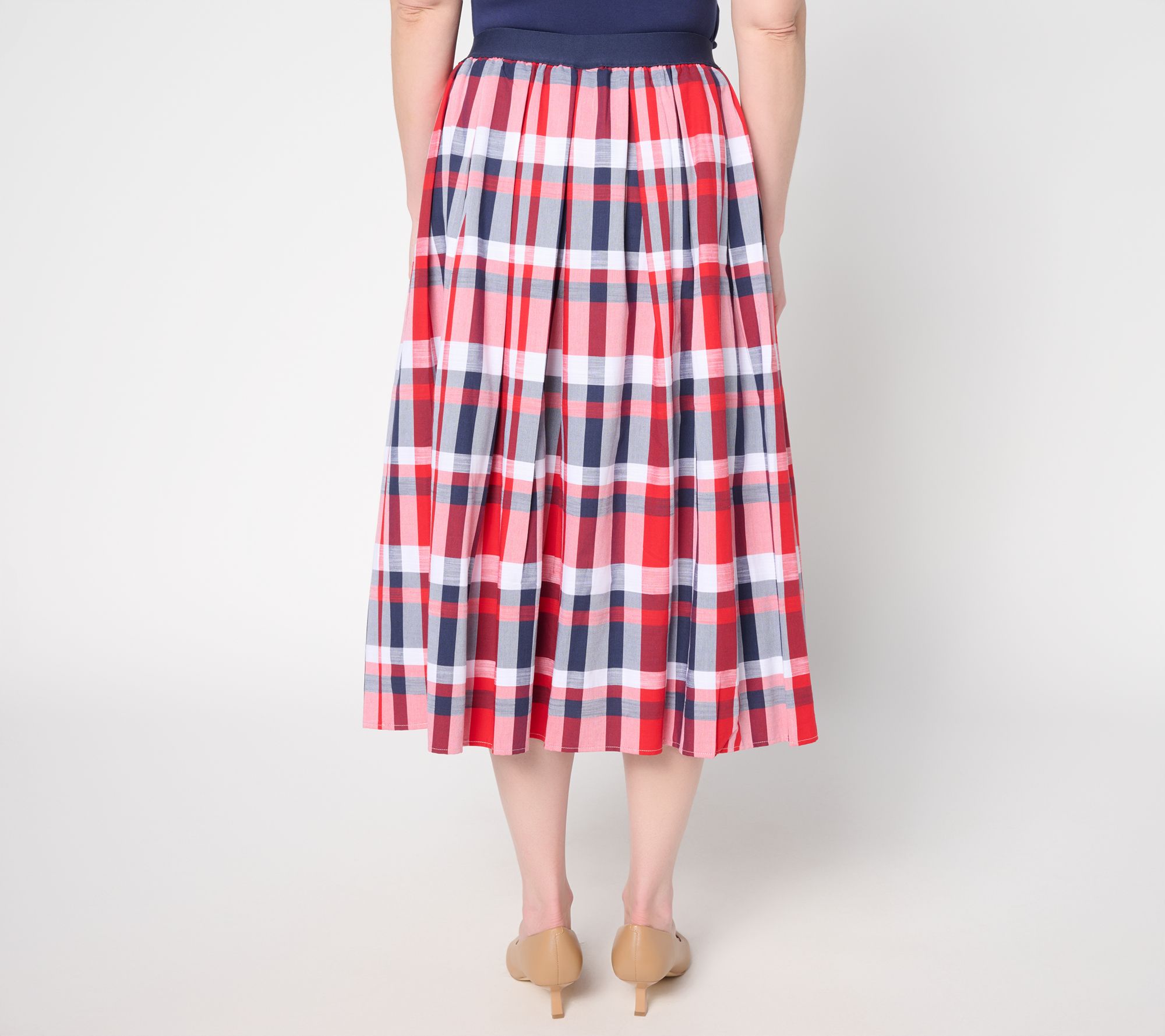 Absolutely iconic. Let the colorful, preppy style of this madras plaid midi skirt define your style this season -- at outdoor parties, dinner dates, the office, and beyond. From the Joan Rivers Classics Collection®.