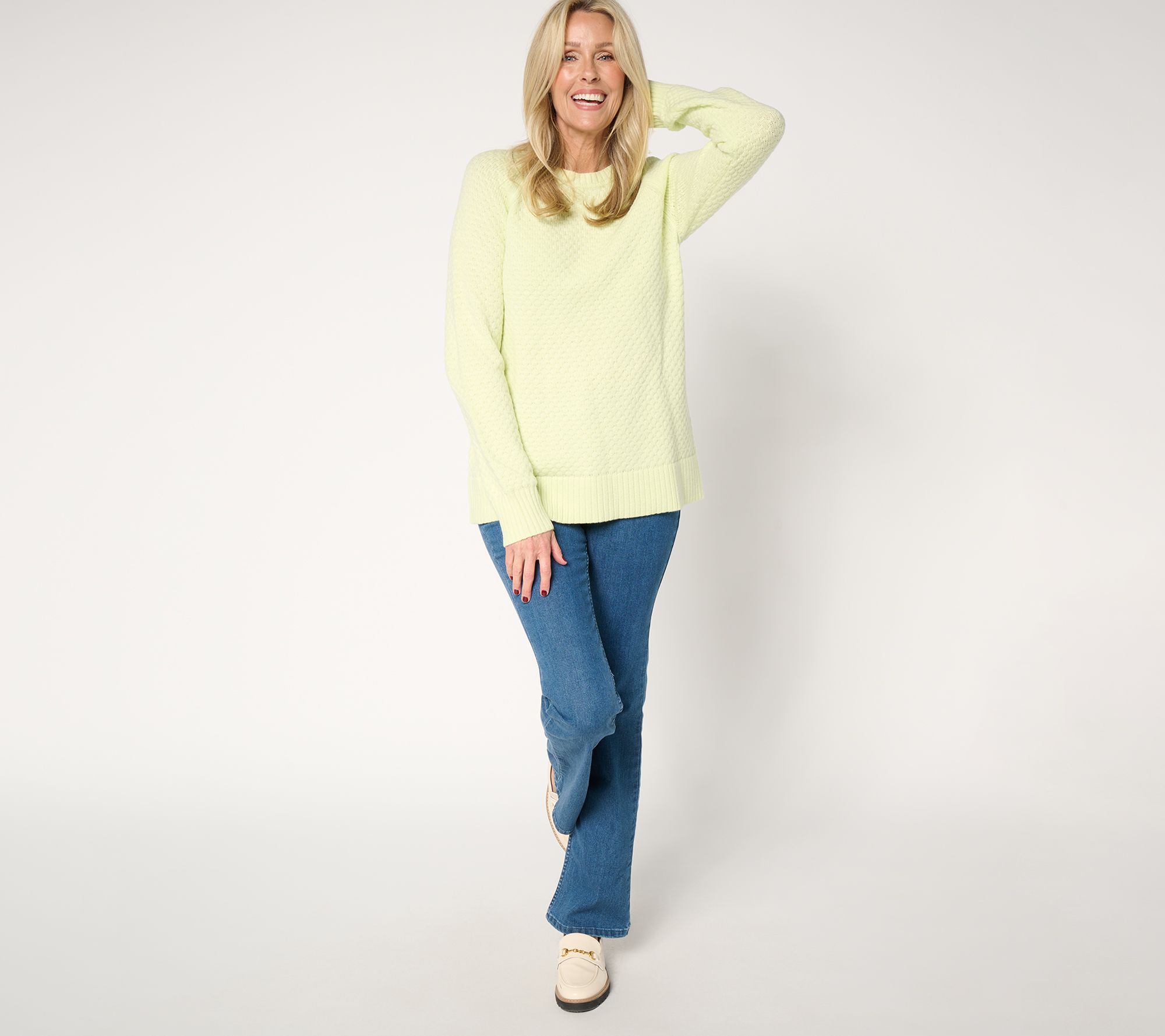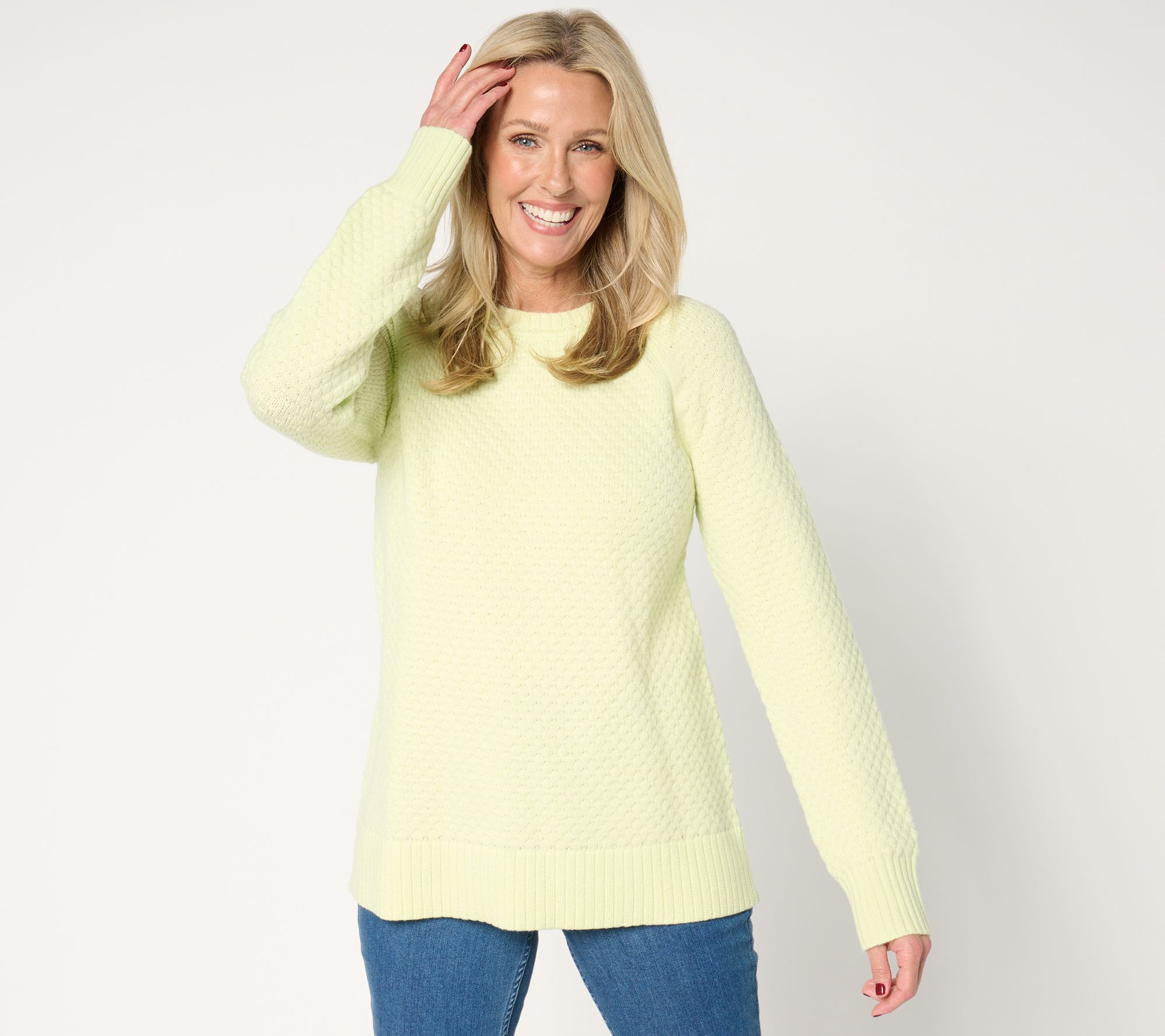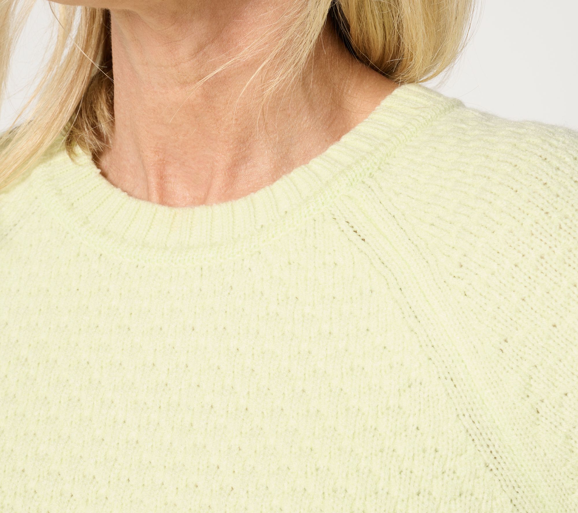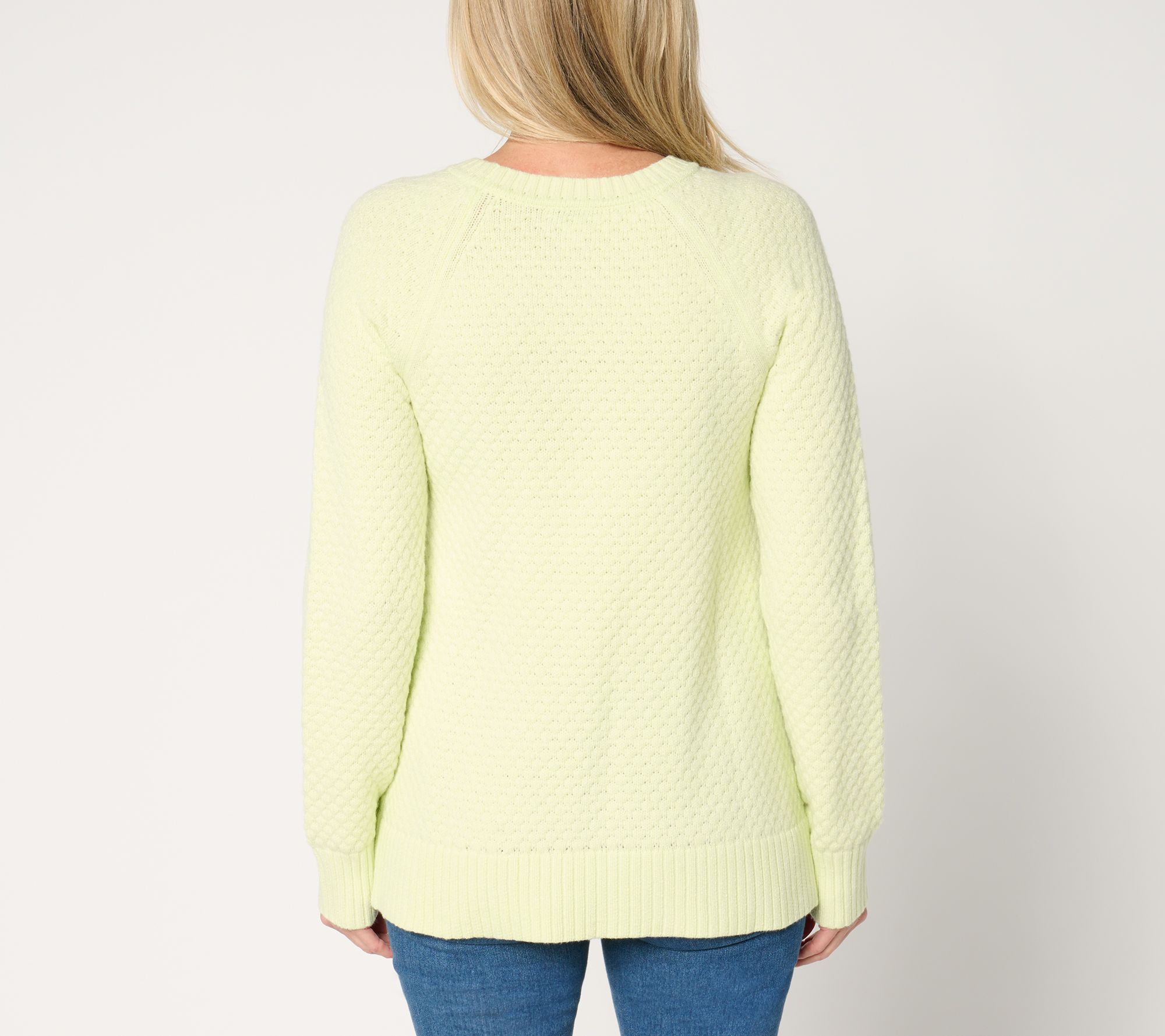Step up your sweater game with this popcorn-stitch crewneck. Designed with long raglan sleeves and ribbed details at the hem, neck, and cuffs, it pairs perfectly with jeans for a cozy, chic look or with a skirt for a dressed-up twist. From the Joan Rivers Classics Collection®.