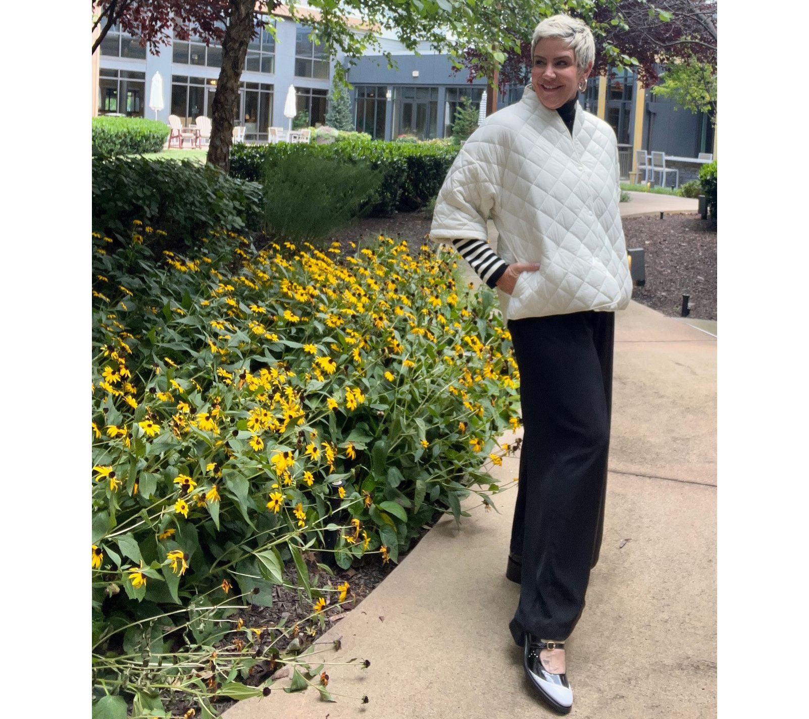 • Features: quilted design, 3/4-length sleeve, mock neckline, three snap closure, on-seam pockets, back placket with functional snaps