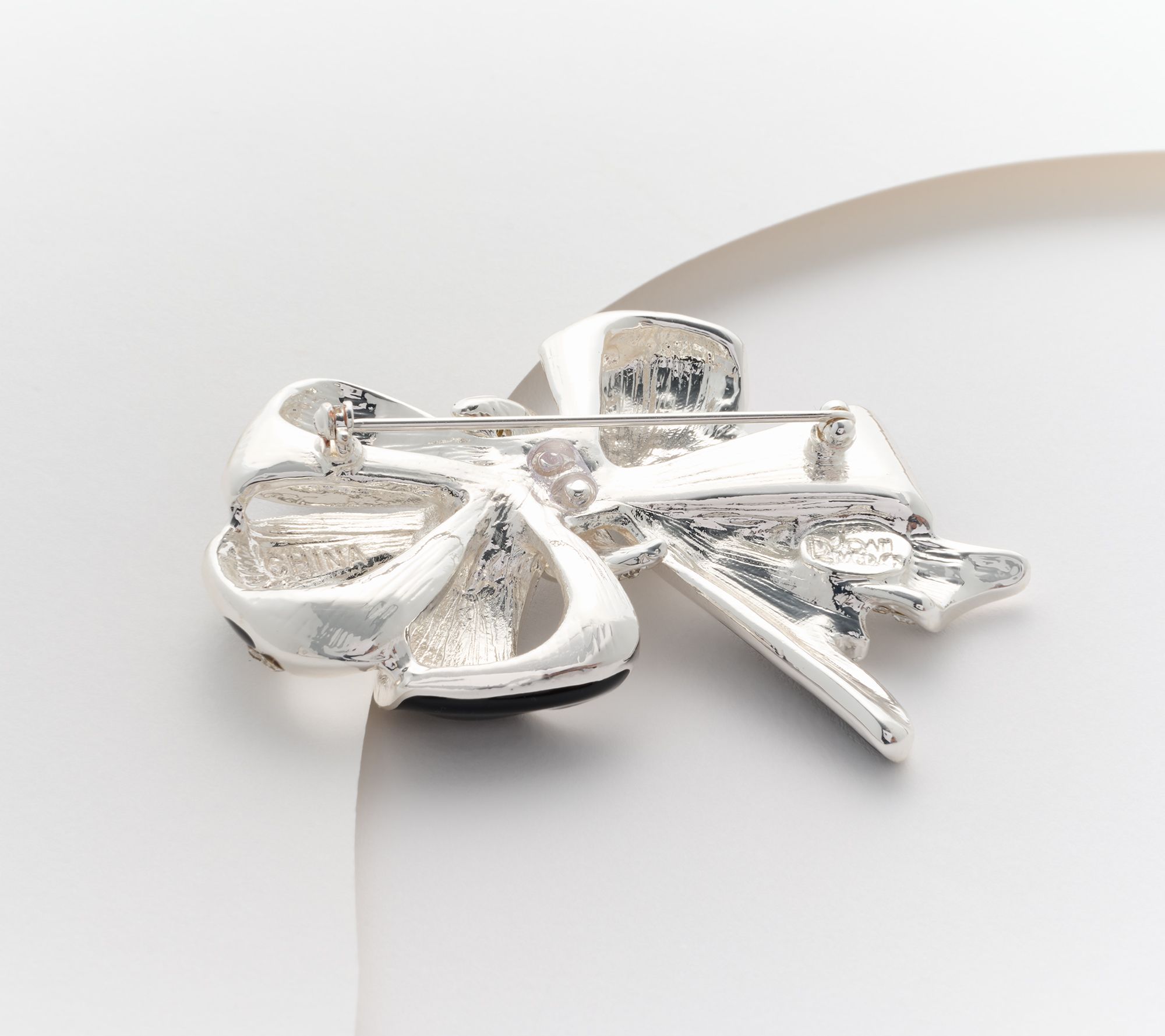 Give off glamorous vibes with this Joan Rivers bow pin. Graceful ribbons accented with vibrant enamel and clear pave crystals create an eye-catching design that's ready for any red carpet moment. From Joan Rivers Classics Collection.