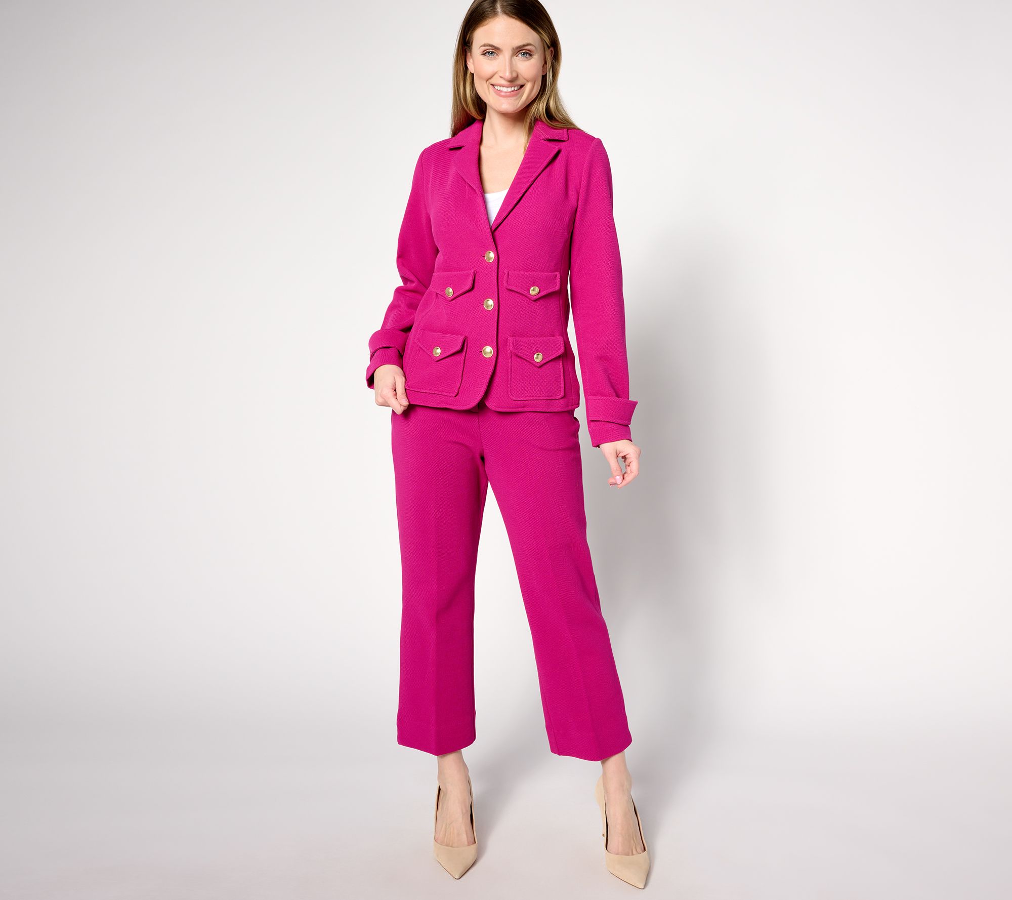 "As Is" Joan Rivers Red Carpet Stretch Pique Button Front Blazer