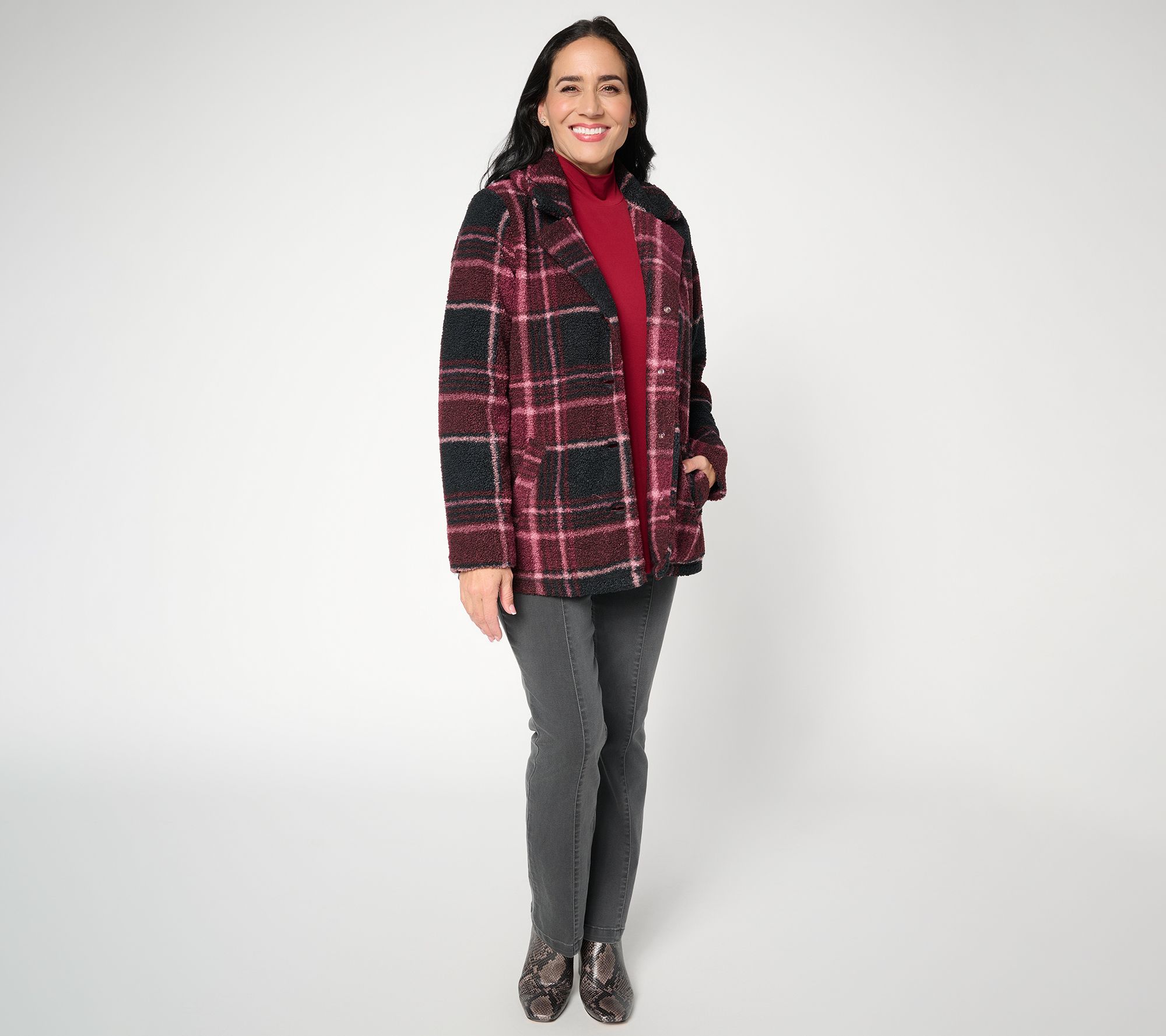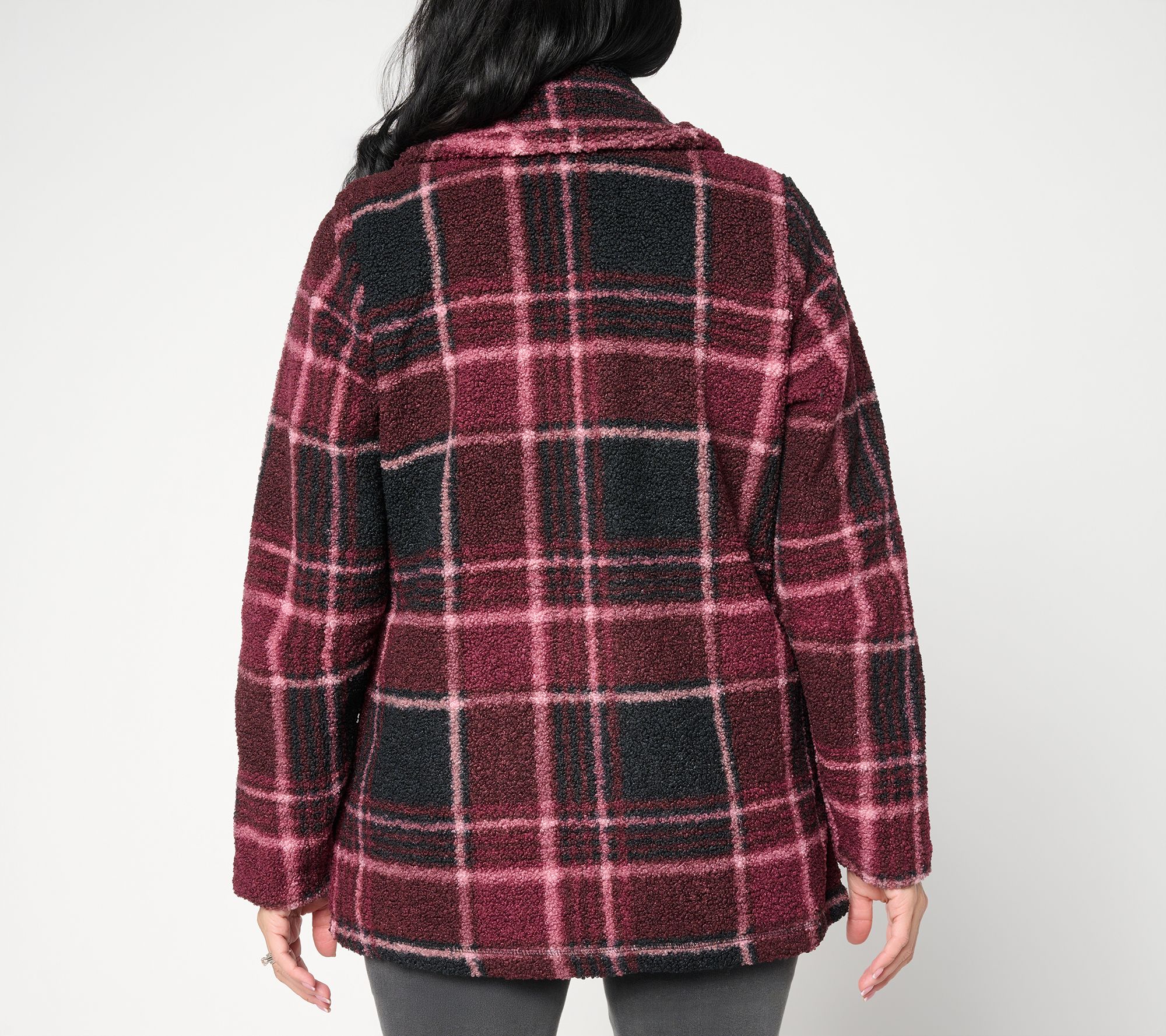 "As Is" Joan Rivers Regular Button Plaid Sherpa Jacket