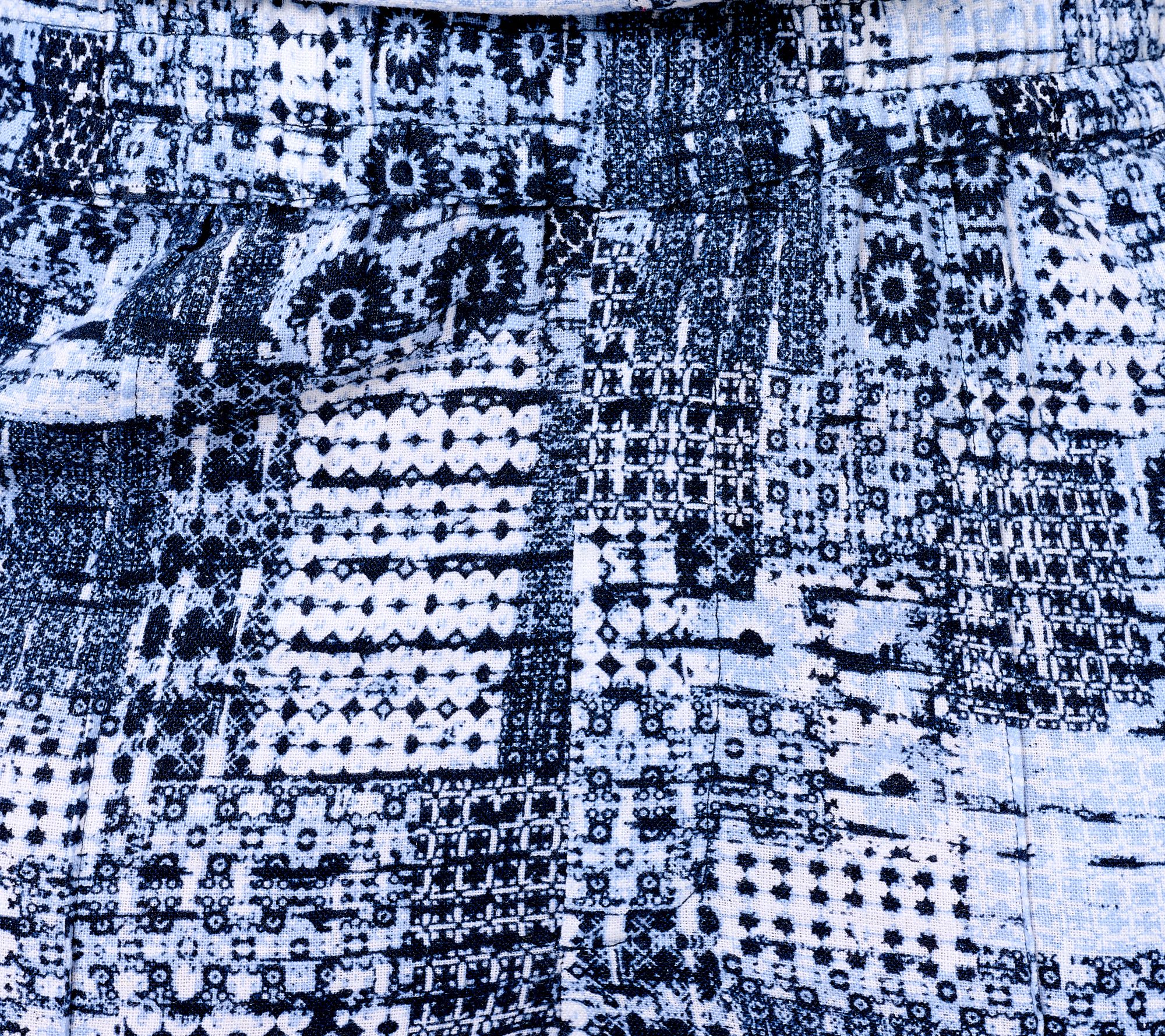 • Features: elasticated waistband and pocket at side, faux front fly with J-stitch, side vent at hem