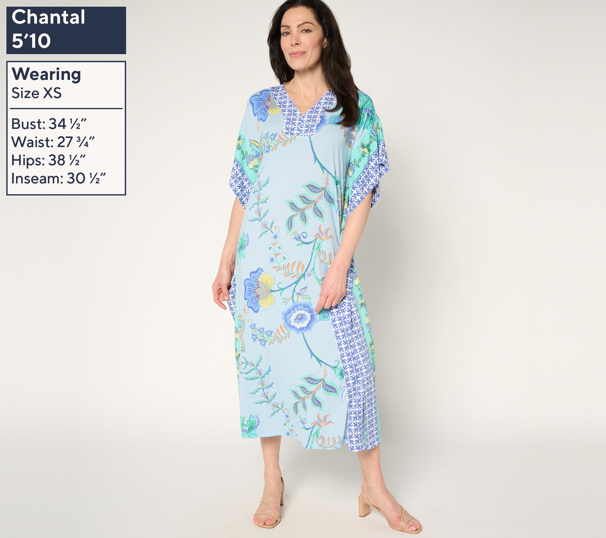 • Features: caftan style, placket at neckline, straight bottom hem