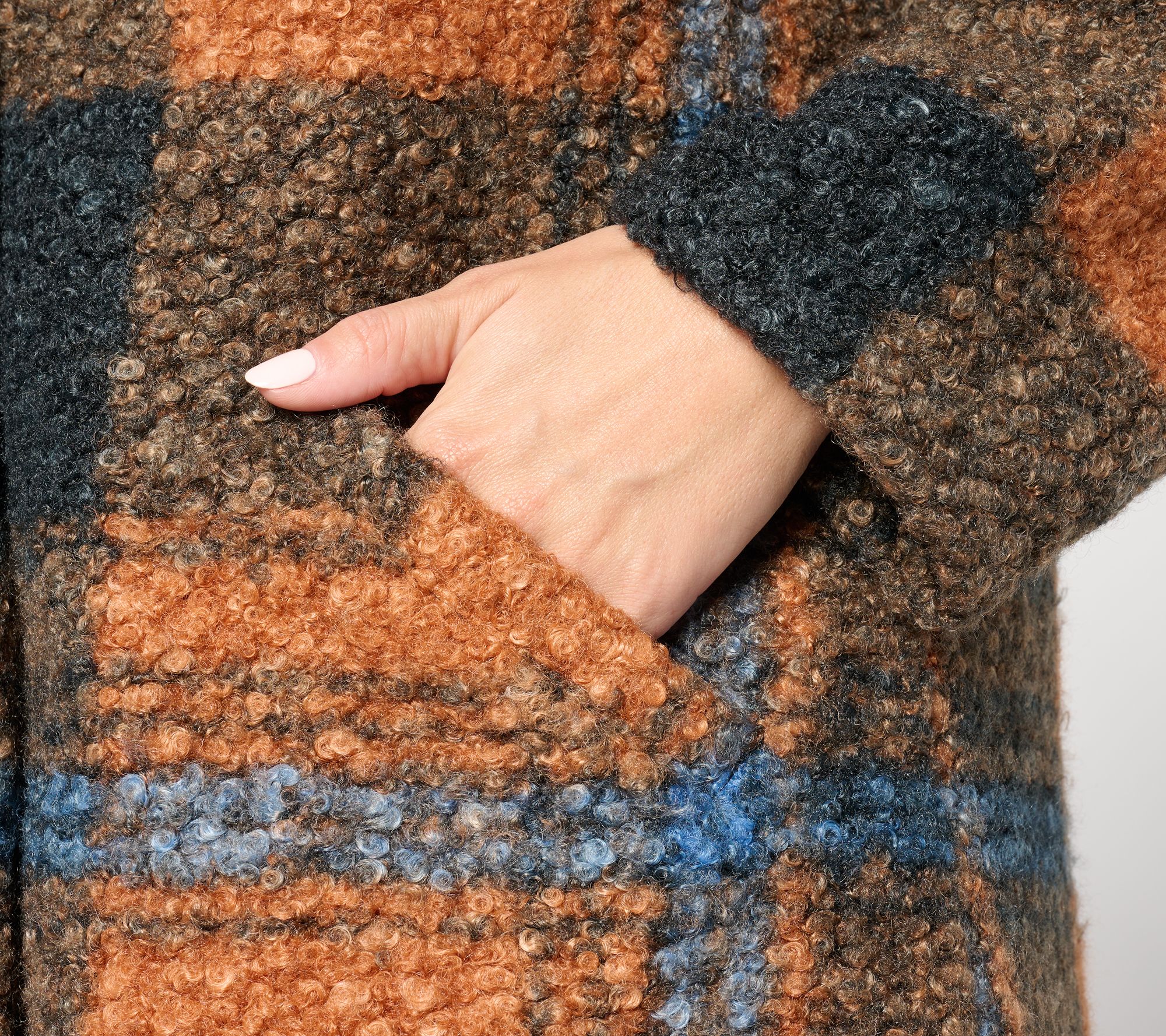 "As Is" Joan Rivers Regular Plaid Curly Sherpa Shawl Collar Coat