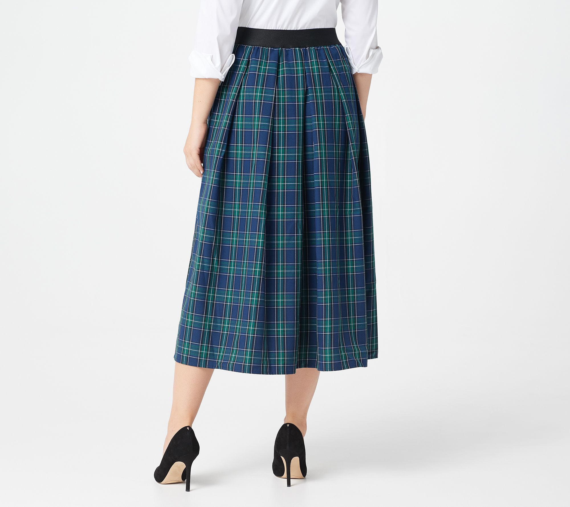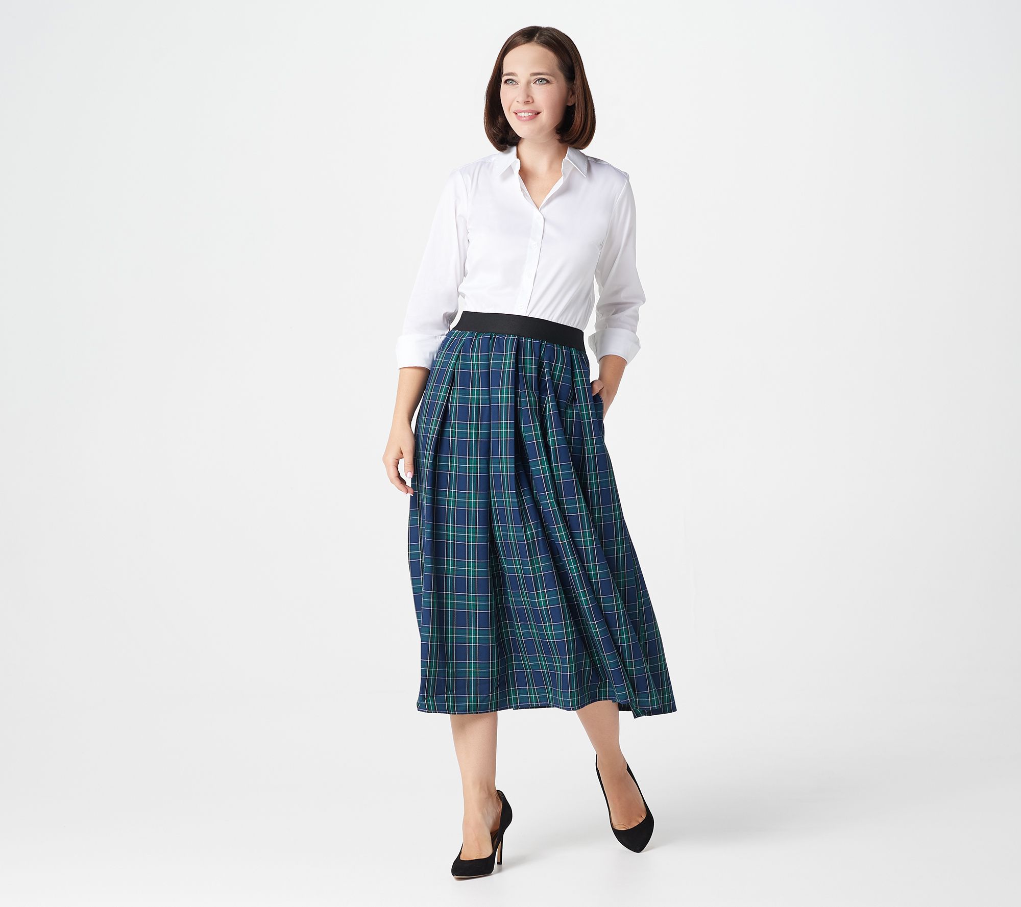 Picture it: this tartan plaid midi skirt, some knee-high leather boots, and a classic blouse. Holidays, here you come. From the Joan Rivers Classics Collection®.
