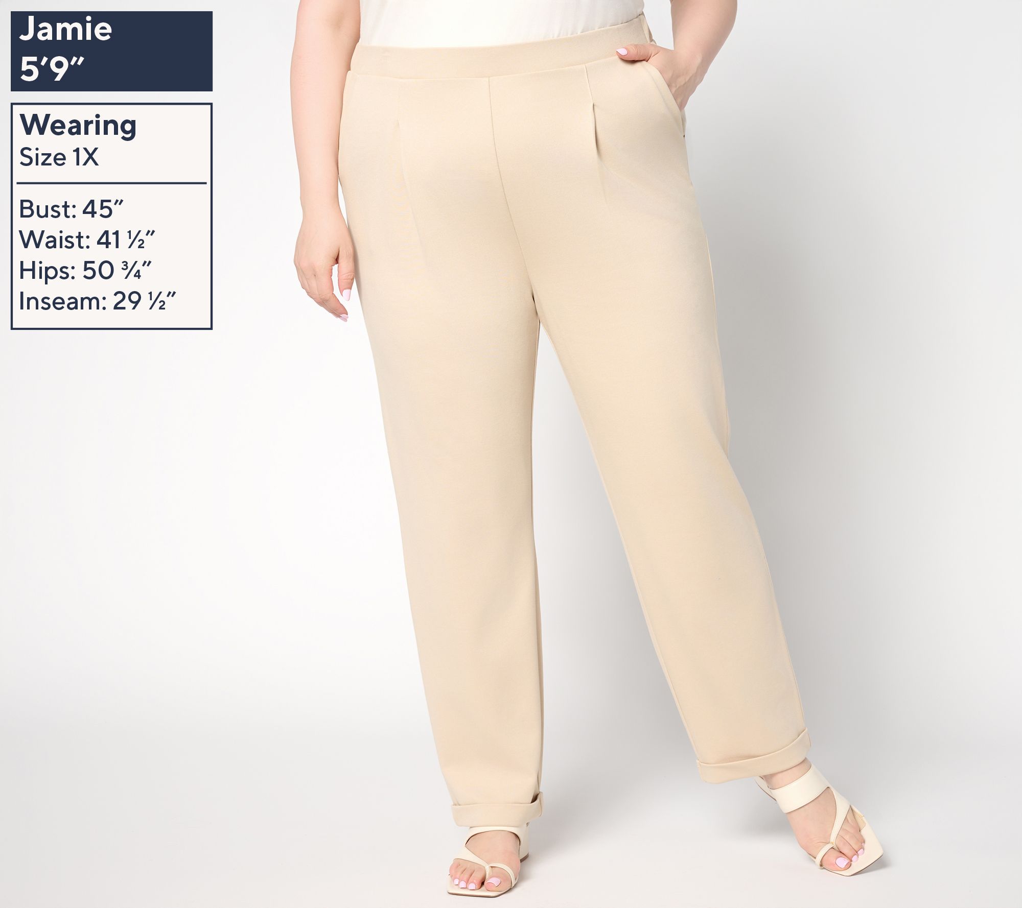 Just dropped: a workwear refresh! Power through your day in these polished ponte pants that feature flattering pintucks and a refined cuff at the ankle. Head straight from agenda-driven meetings to relaxed meet-ups in tapered pull-ons (yes, pull-ons!) that'll keep your look right on course. From the Joan Rivers Classics Collection®.