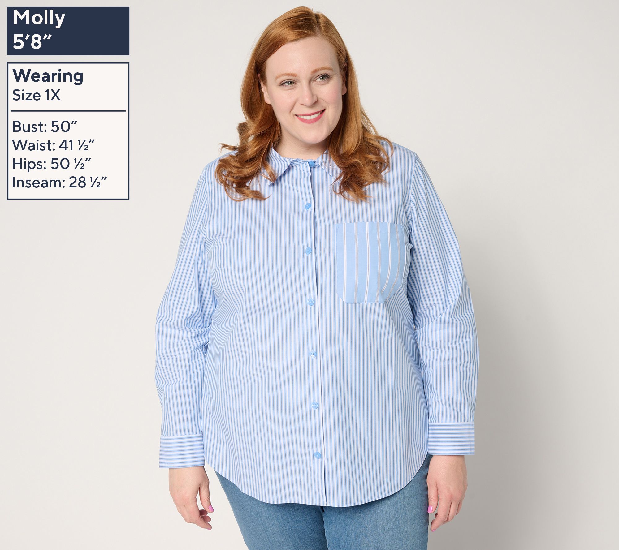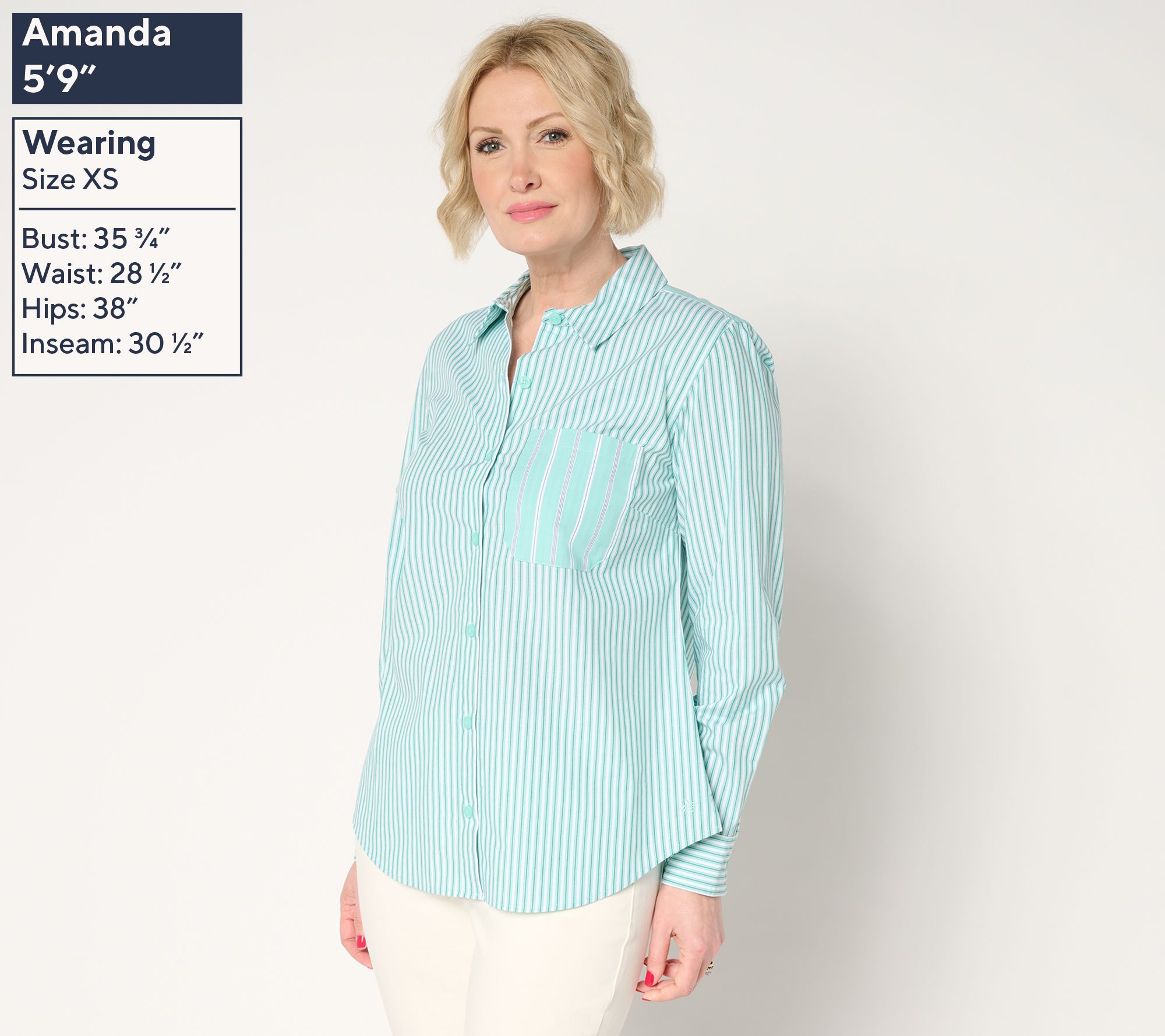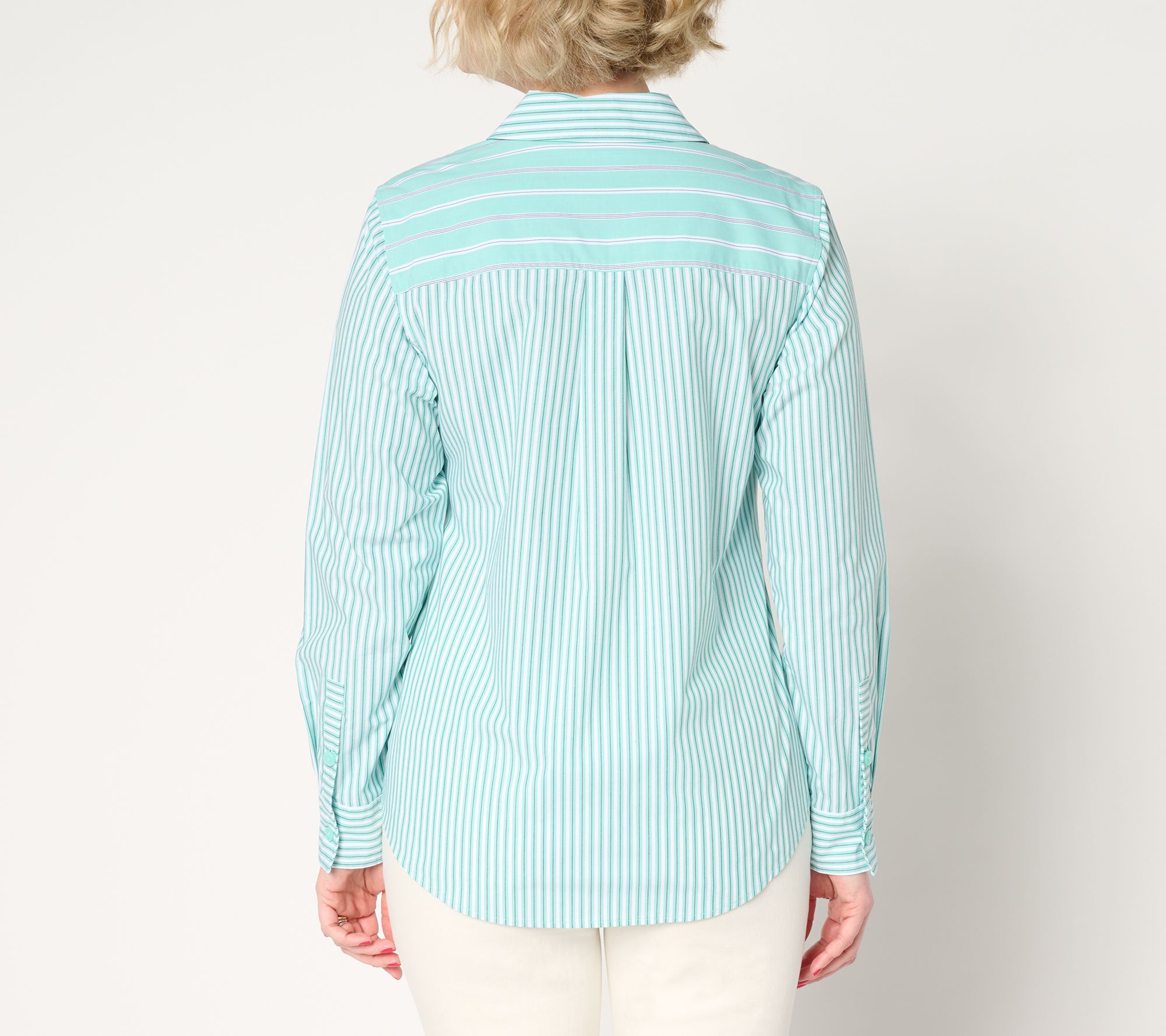 "As Is" Joan Rivers Stretch Cotton Button Front Mixed Stripe Shirt