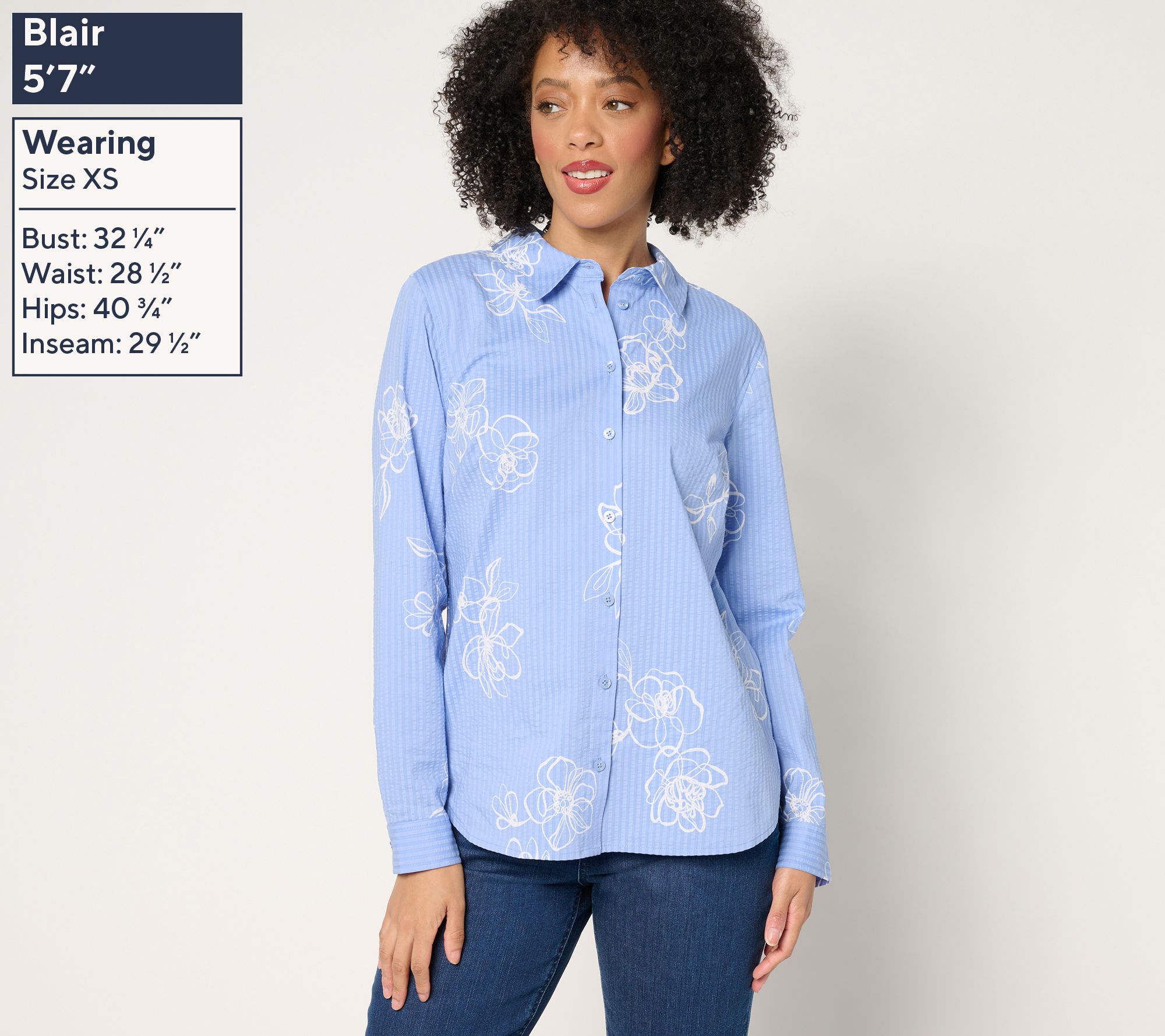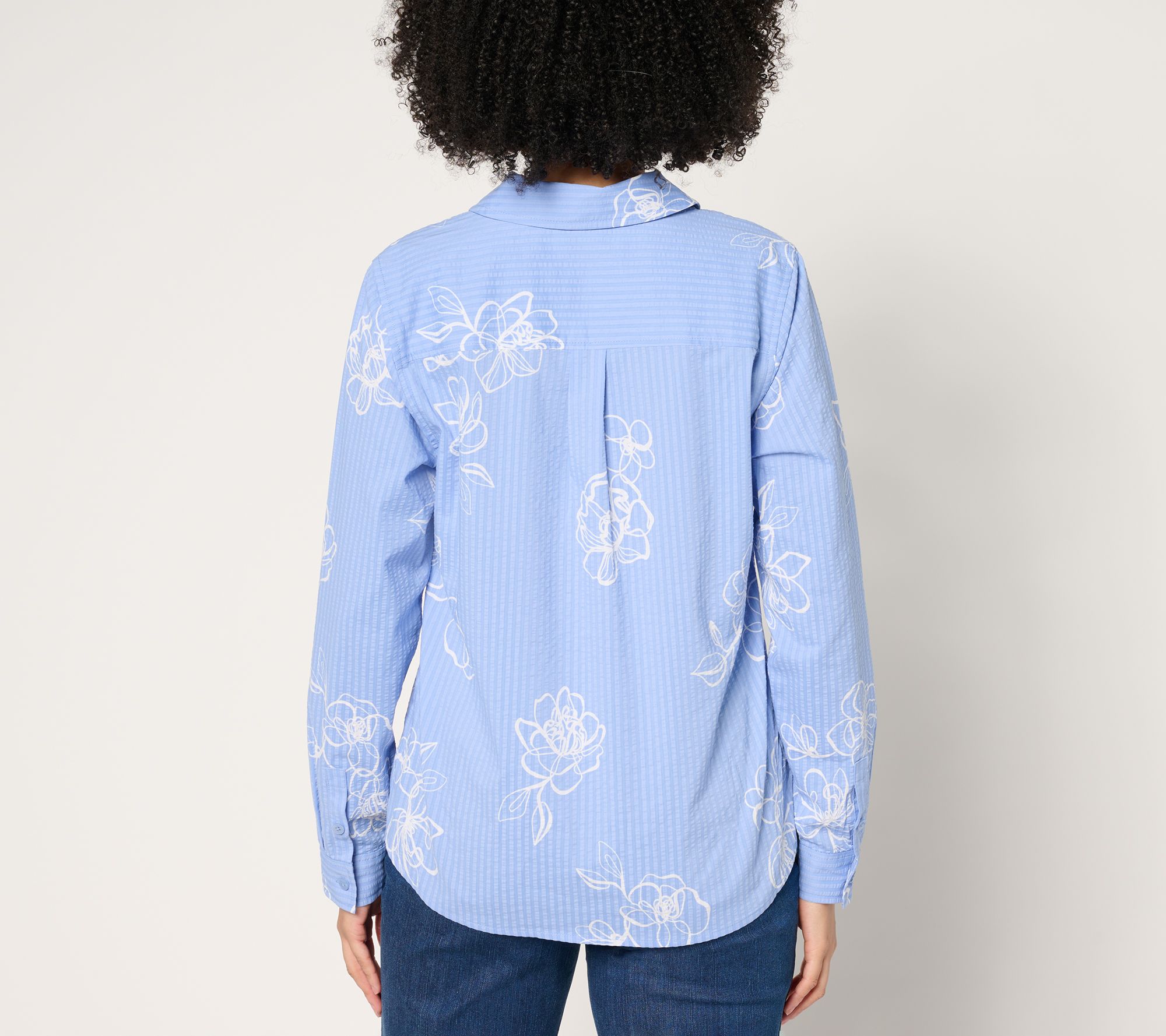 "As Is" Joan Rivers Stretch Cotton Seersucker Floral Shirt