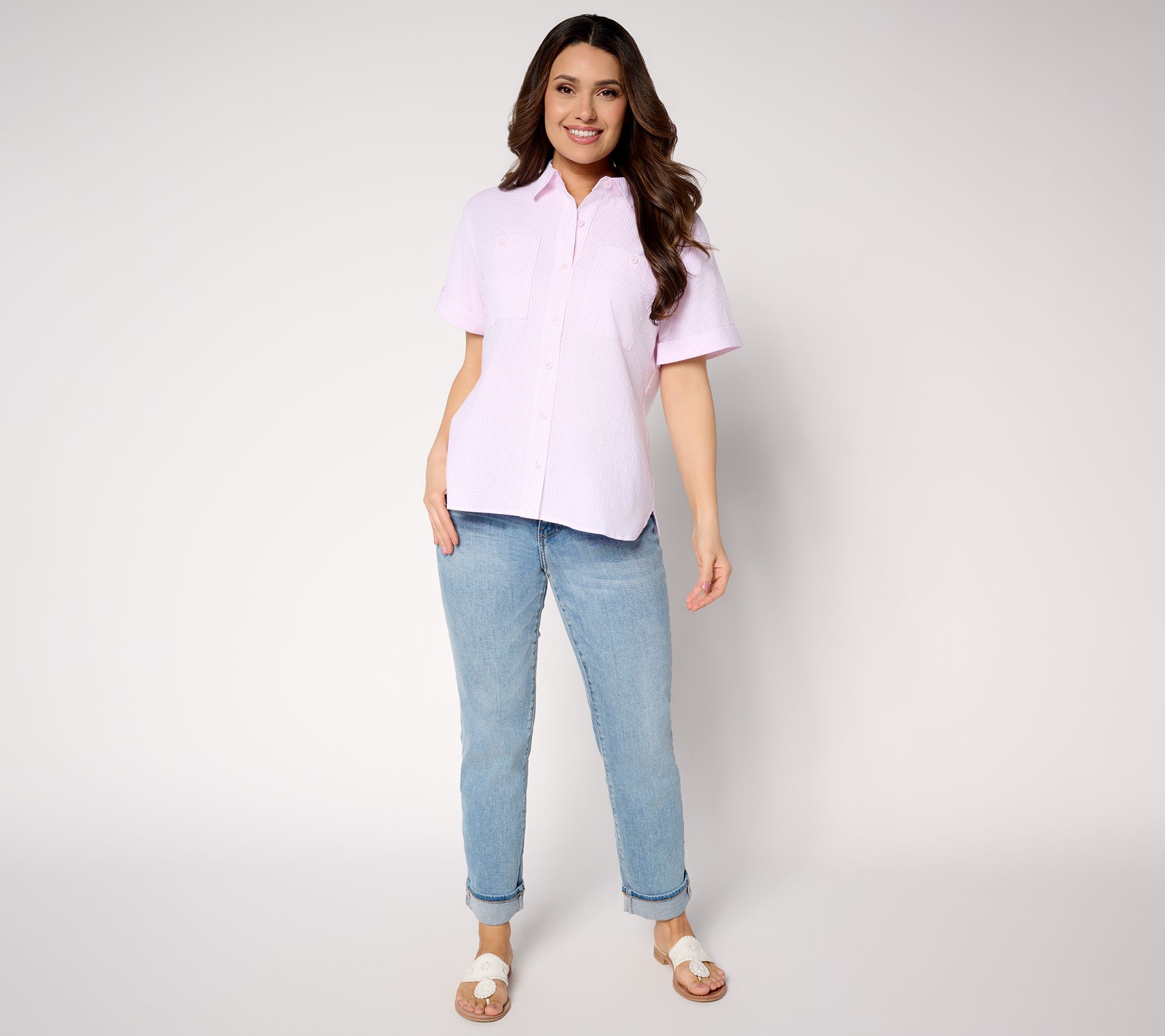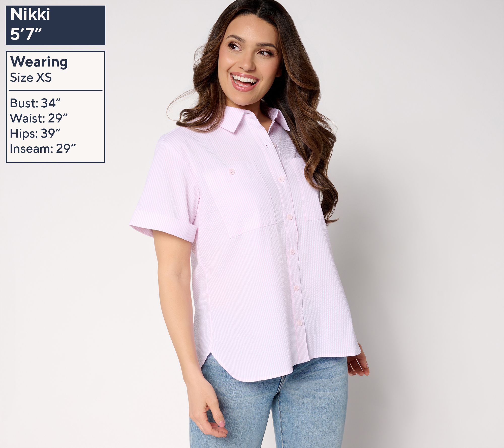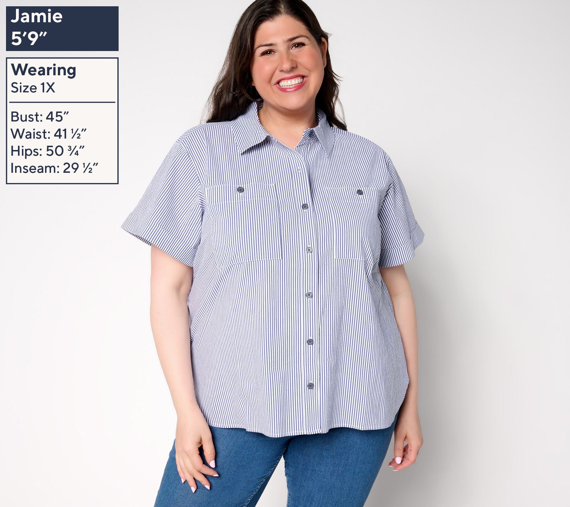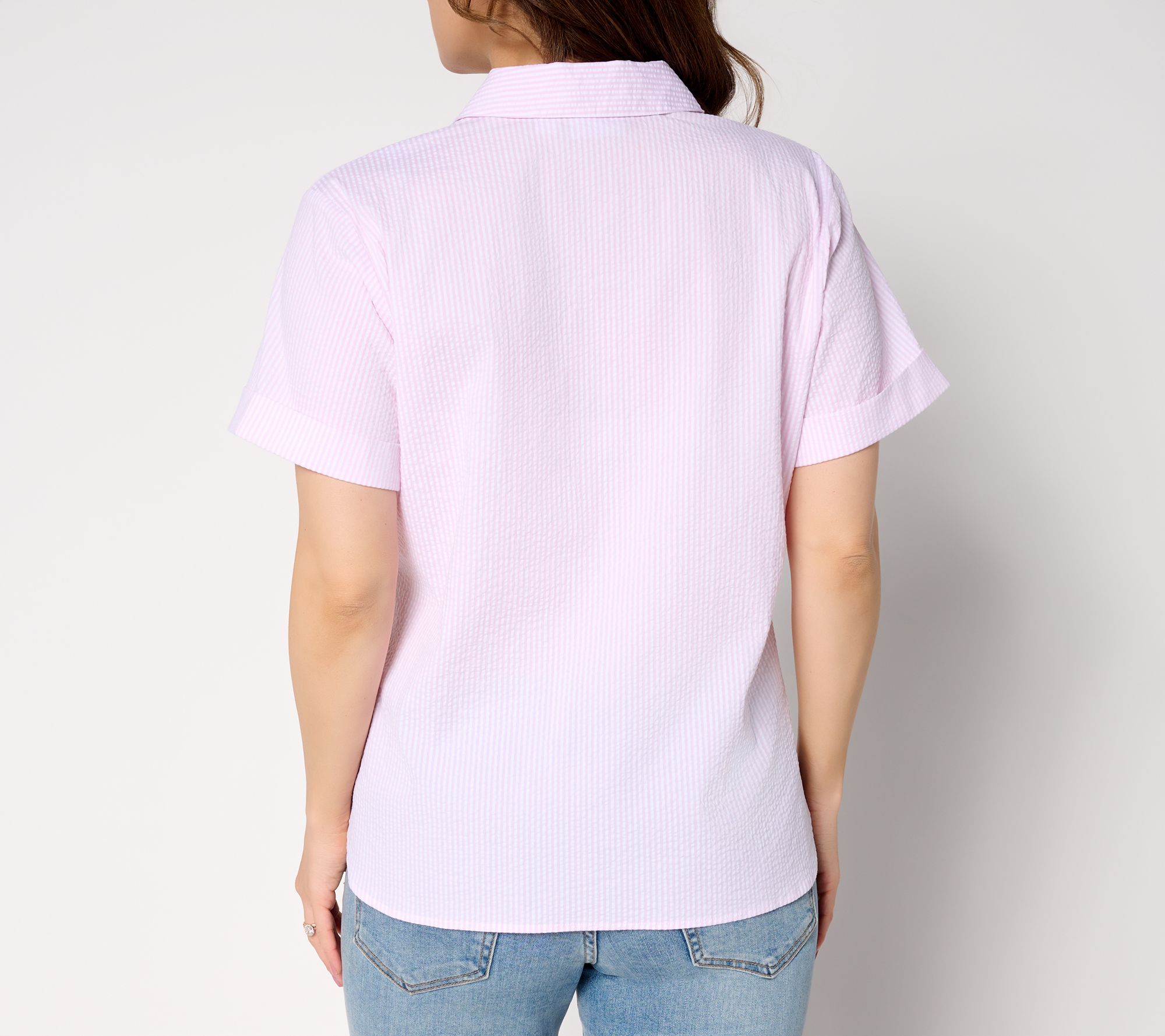 "As Is" Joan Rivers Striped Seersucker Short Sleeve Button Shirt