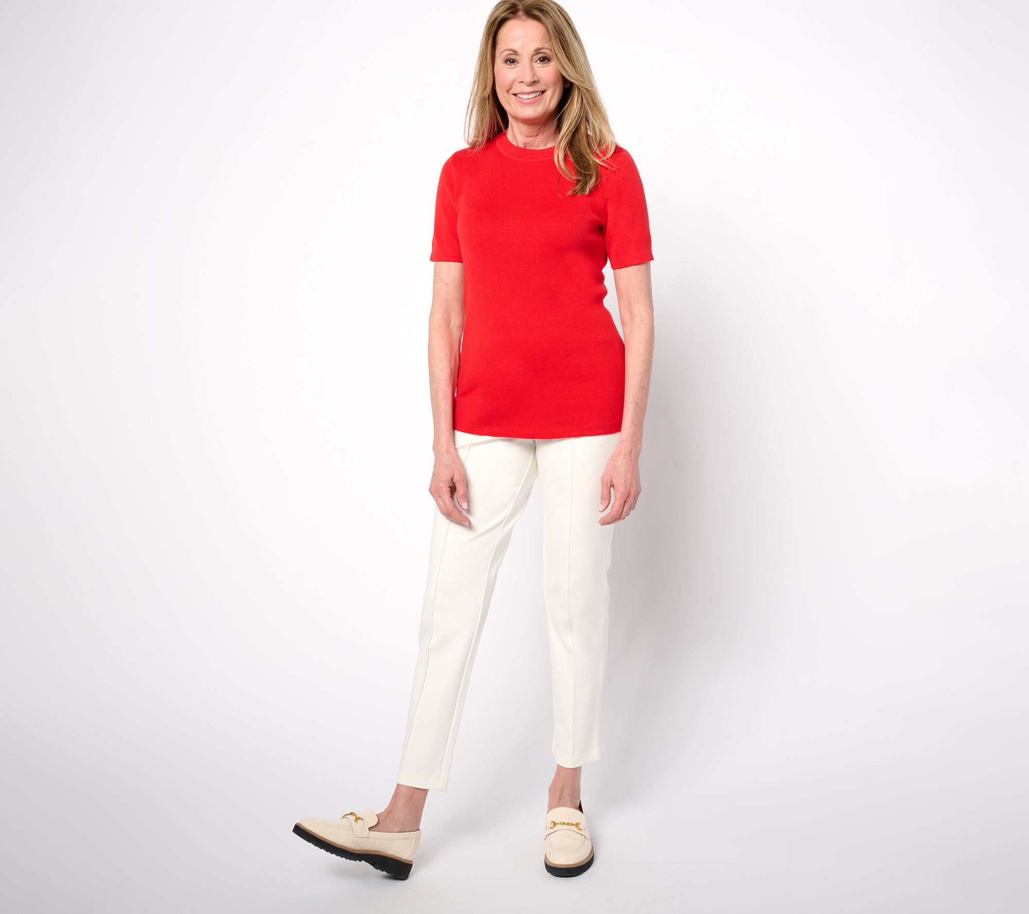 Reach for this silk-blend sweater tee whenever you want to create a refined confident look. Designed for effortless pairing season after season, the crew neckline and ribbed neck band keep things classic, while side slits at the straight hem lend a flattering and easy finish. Try it layered under a blazer or styled solo for a polished look that works from desk to dinner. From the Joan Rivers Classics Collection®.