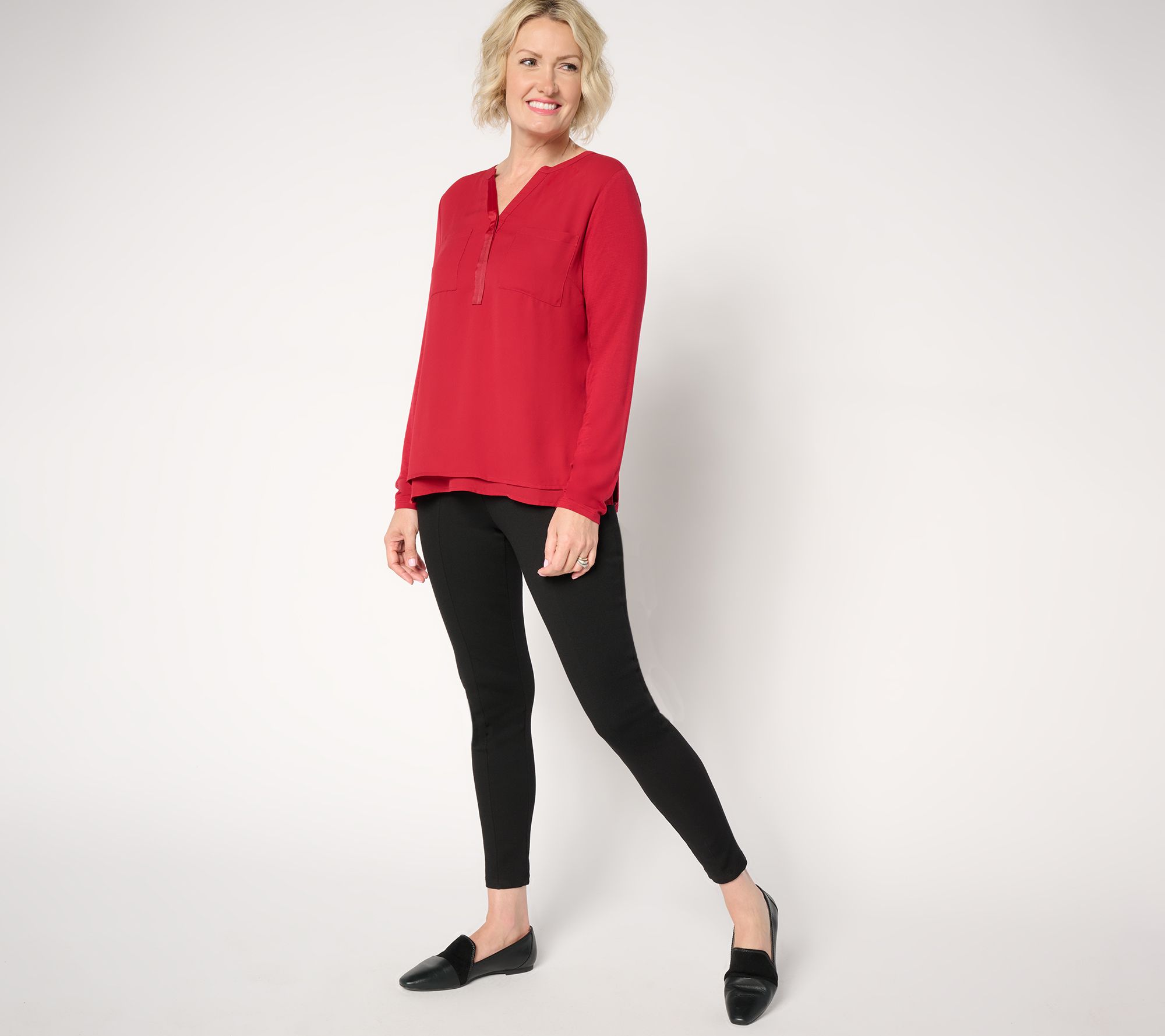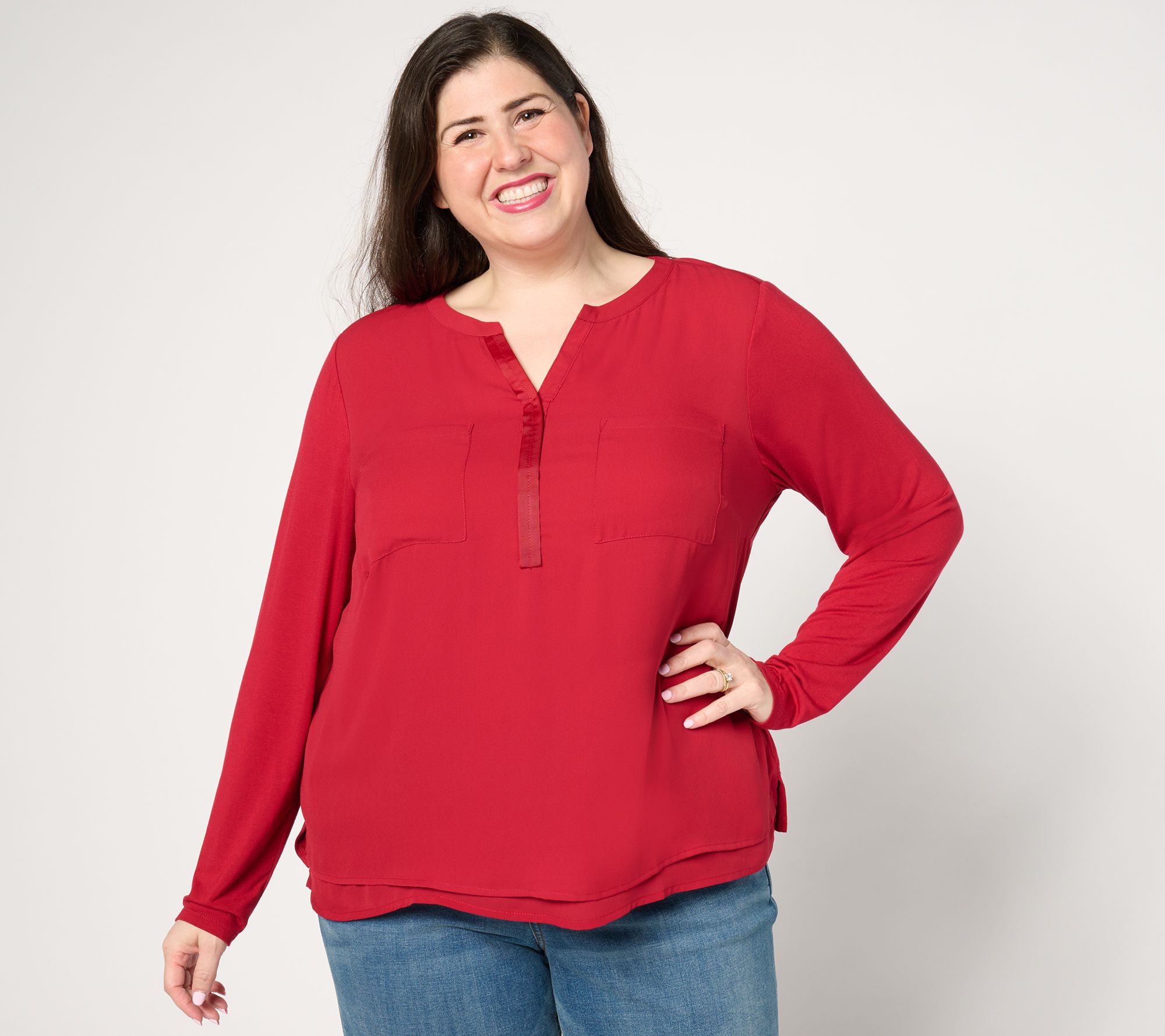 A ribbon detail, split neckline, and layered look makes this top a must-have for your closet. Dress it up or down depending on your mood! From the Joan Rivers Classics Collection®.