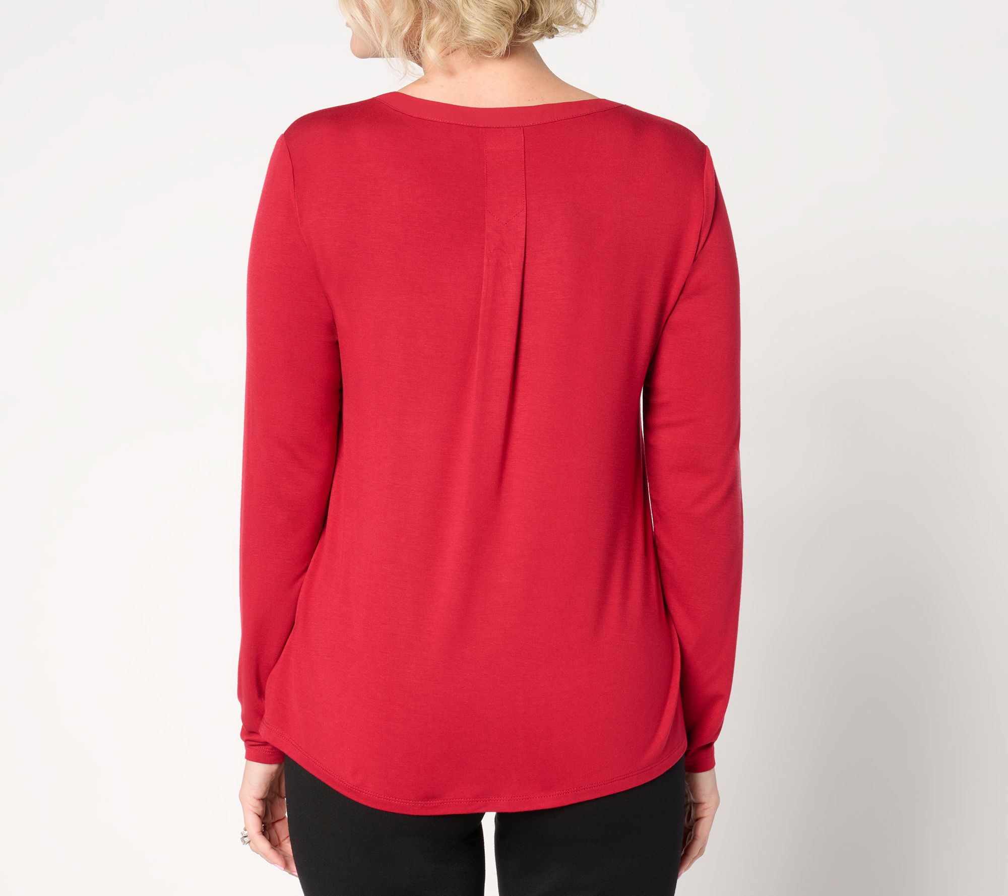 "As Is" Joan Rivers Y-Neck Mixed Media Long Sleeve Top