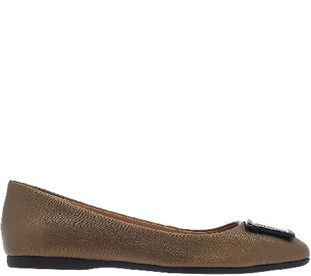 "As Is" Judith Ripka Saffiano Leather Slip-on Flats with Buckle - Sally