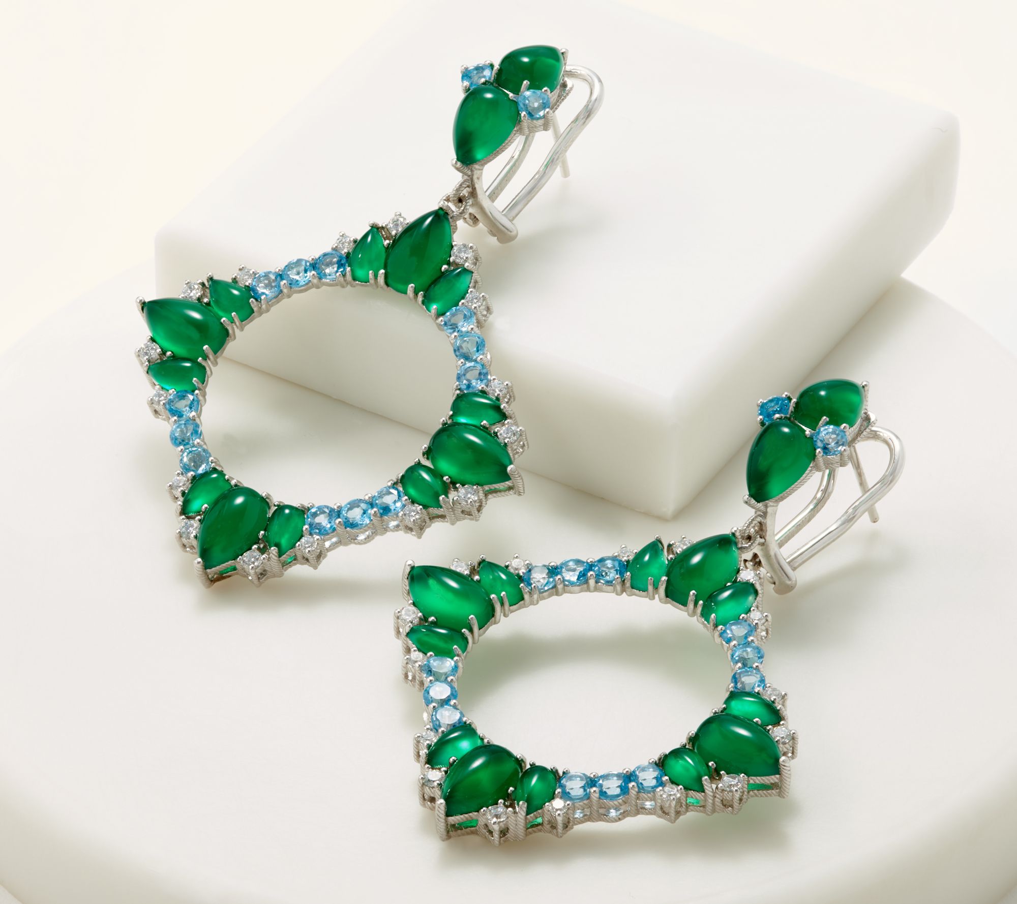 Beautiful gemstone hues of green chalcedony and blue topaz are brilliantly accented along these earthly earrings. From Judith Ripka.
