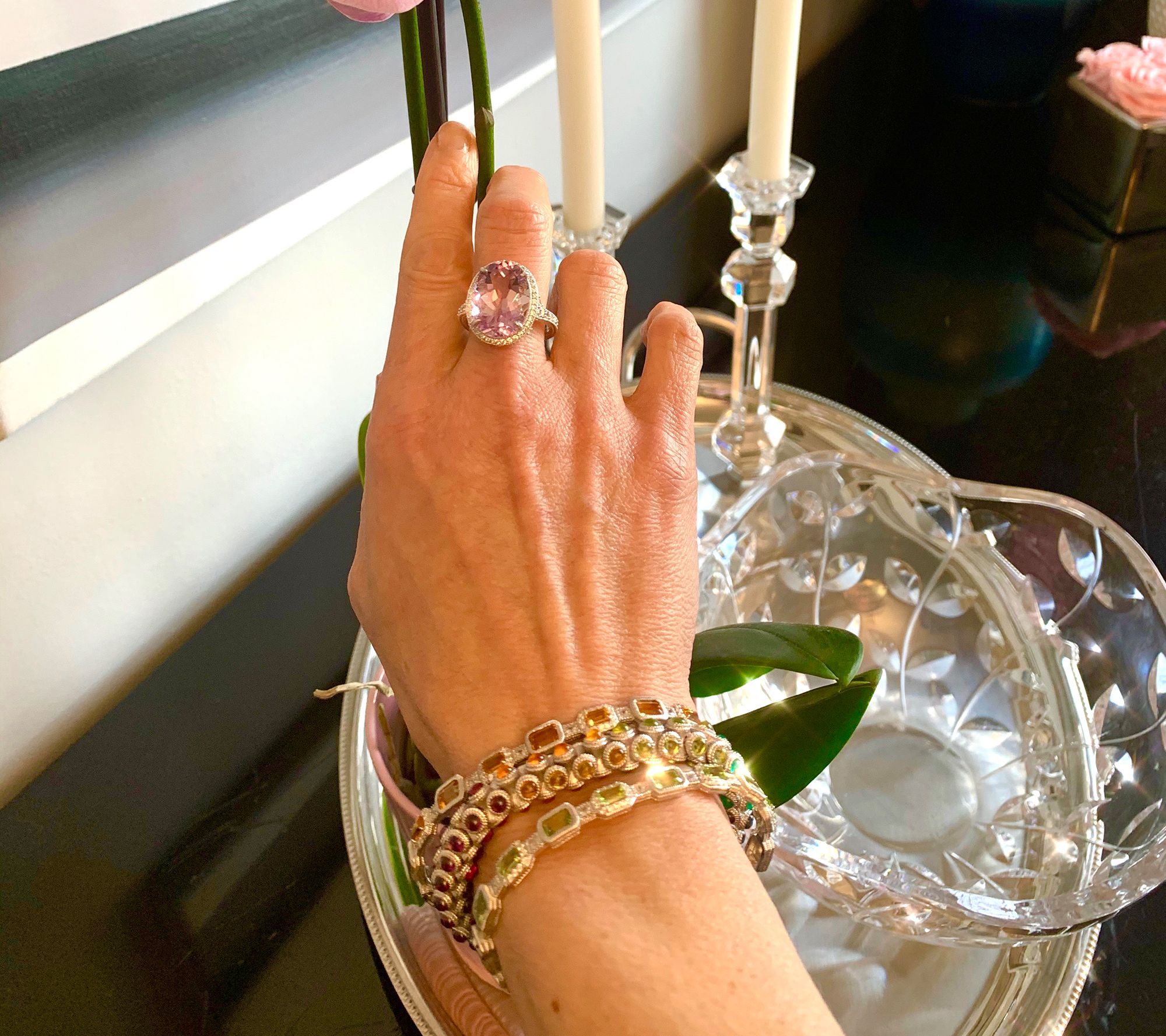 "As Is" Judith Ripka Sterling Silver Rainbow Gemstone Bracelet