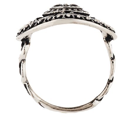 Come out of your shell. This ring has an earthly vibe to it with its beaded border, braided shank, and turtle design set right in the middle. With its intricate design, polished sterling silver makeup, and oxidized finish--this accessory is sure to win the race. From Kenneth Johnson.