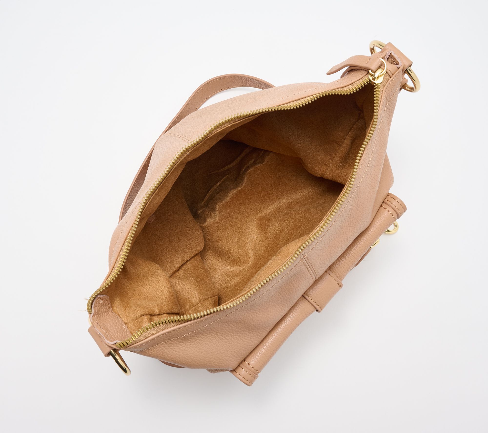 For all-day outings, commutes, or spontaneous plans, this convertible leather hobo lets you tailor your carry with an adjustable double-strap design and clever buckle detail. Easily switch from shoulder to crossbody, with space for essentials inside plus a handy outside pocket with magnetic snap for keys, badges, or sunnies. From Kim Gravel.