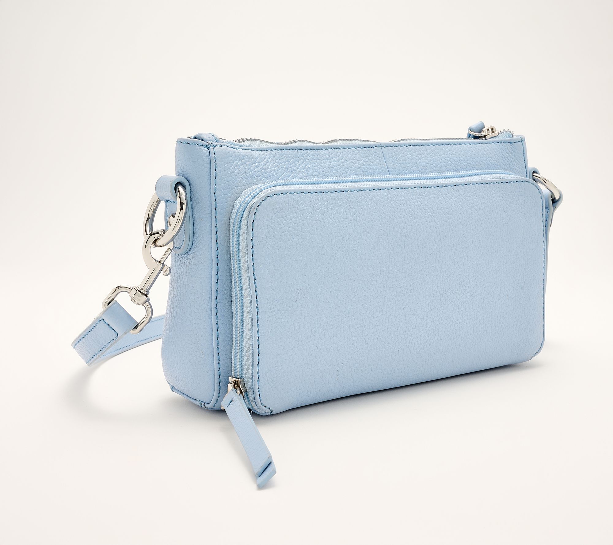 From casual catch-ups to quick errands, this versatile leather crossbody keeps your essentials organized and close at hand. The convertible strap allows you to wear it as a crossbody or shoulder bag, while dual entry options and dedicated pockets make everything easy to find, from cards to cash. Includes a protected wallet for added peace of mind. From Kim Gravel.