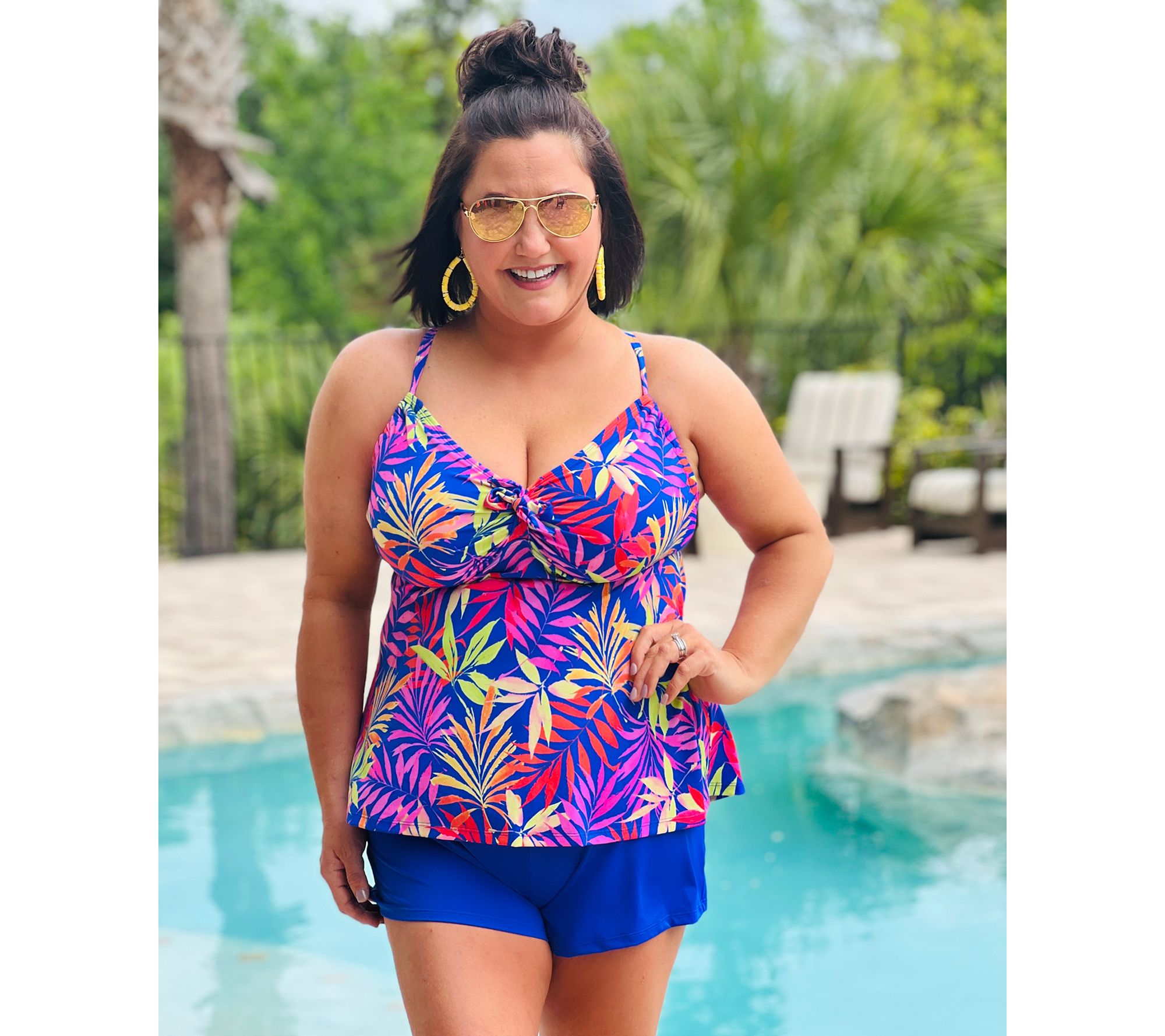 Swim season is here (hooray!). Make a splash at the beach or the pool in this figure-flattering two-piece. A sweetheart neckline and underwire bra offer support and style, while coordinating shorts tie the look together, providing extra coverage and confidence. From Kim Gravel x Swimsuits For All.
