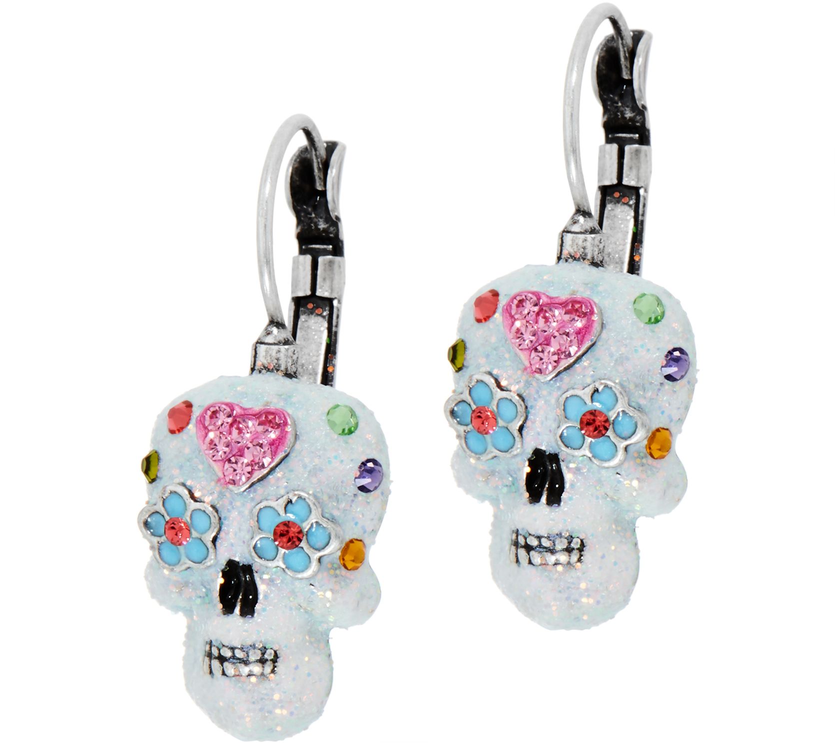 "As Is" Kirks Folly Sugar Skull Leverback Earrings