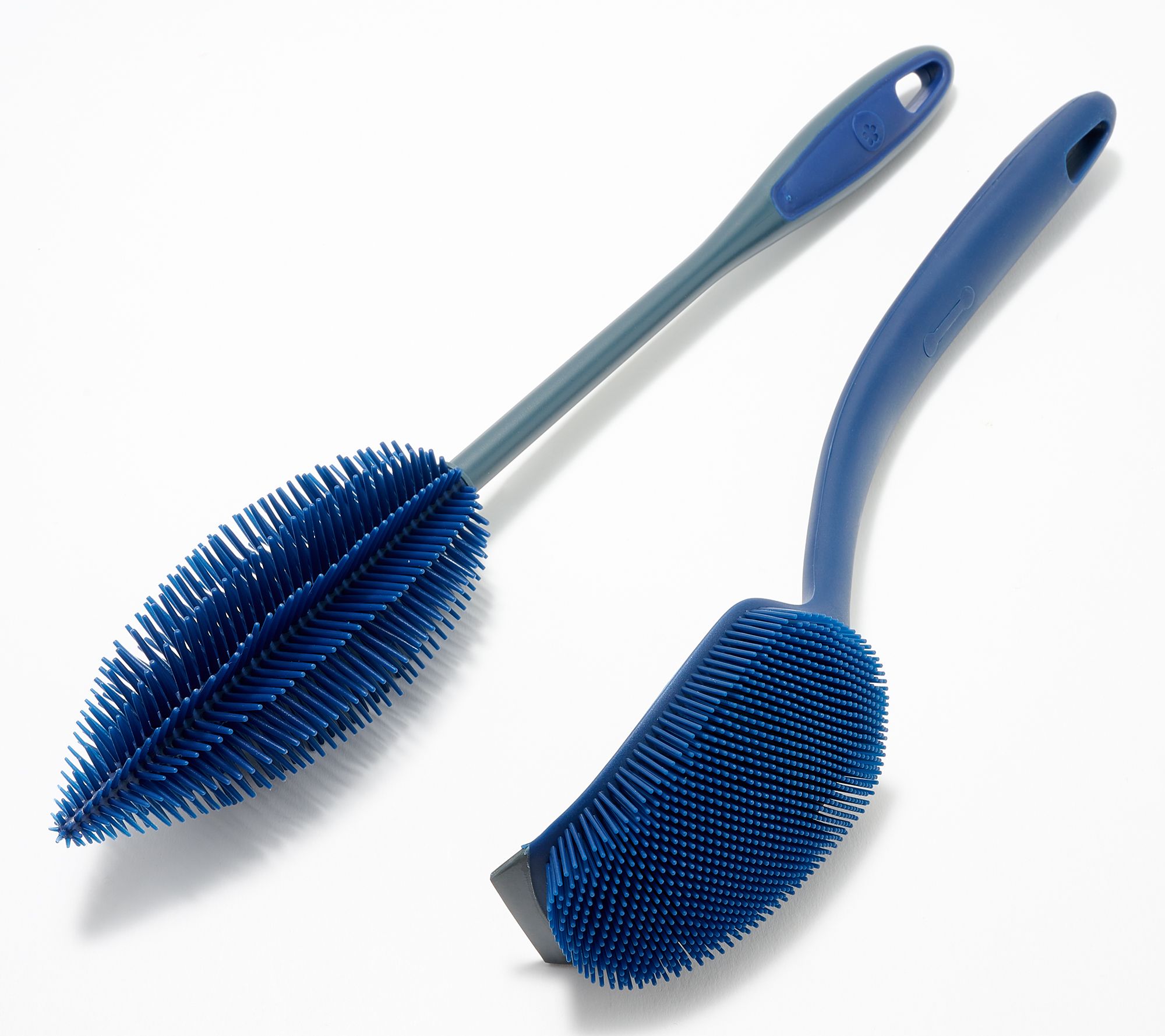 Tired of questionably clean water bottles, straws, and dishes? These specialty brushes are designed with soft silicone bristles that reach into crevices to clean quickly and completely. The bottle brush removes sticky messes from bottles, vases, and fluted glasses, while the universal brush with scraper is ideal for removing stuck-on food from your bakeware. Two sizes of must-have straw brushes sweep gunk and residue from those tumbler straws your family loves, baby bottles, and more. And dispense just the right amount of soap for the job with the coordinating squeeze bottle. From KOCHBLUME.